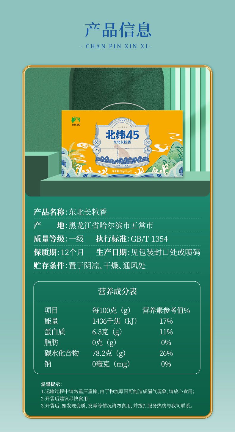 商品名称:北纬45度 东北长粒香礼盒 5kg