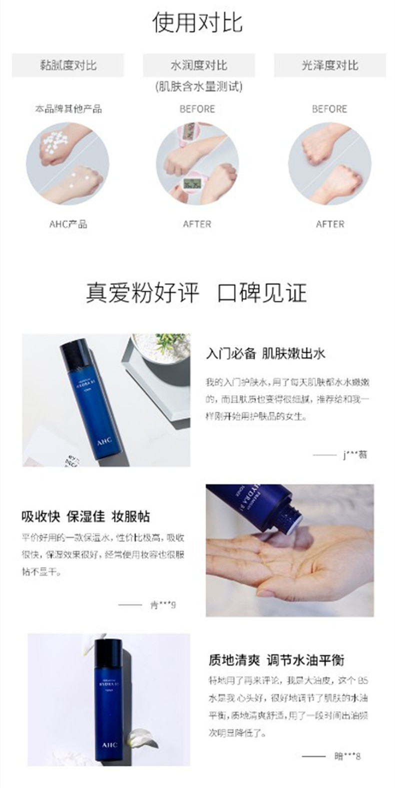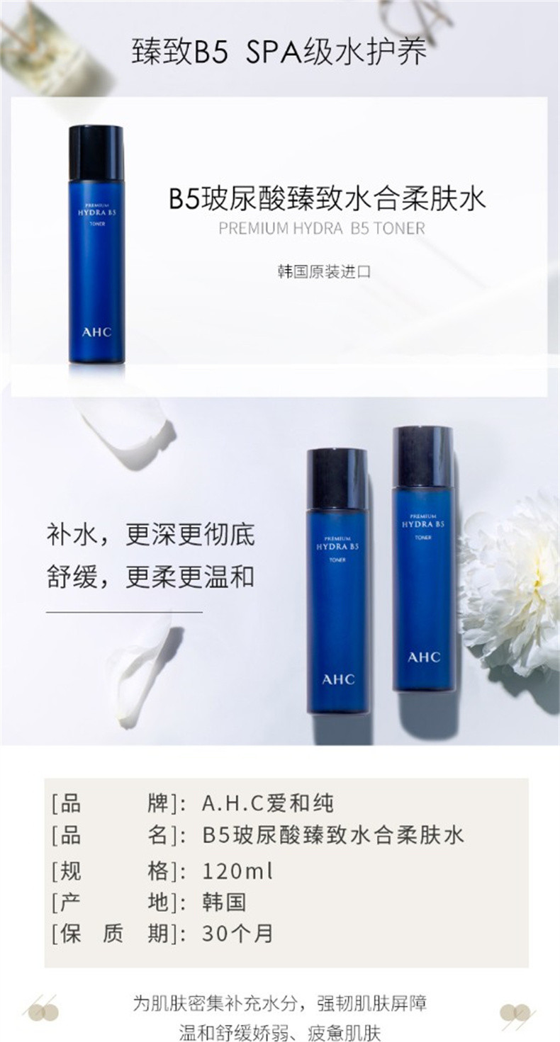 商品名称:AHC 专研B5玻尿酸水盈柔肤水 120ml