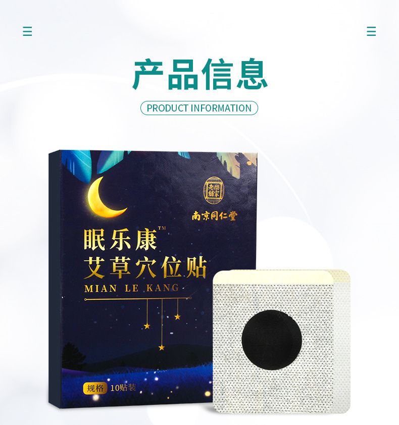 商品名称:南京同仁堂 眠乐康艾草穴位贴 10贴/盒