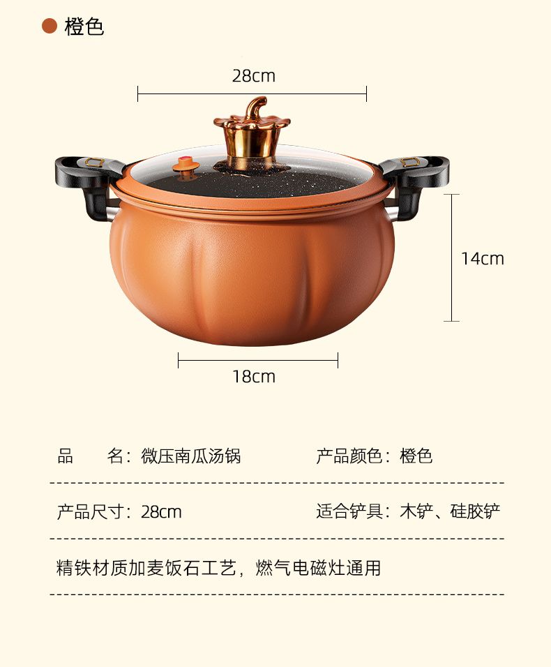 商品名称:翰乐 微压南瓜汤锅 28cm-橙色