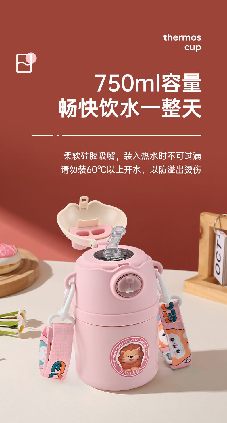 翰乐 翰宝宝男女316吸管保温杯儿童壶HL-HBB316 750ML
