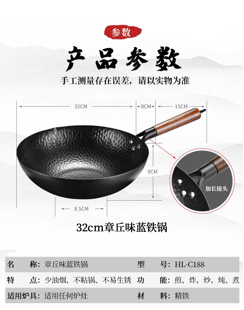 商品名称:翰乐 味蓝炒锅HL-C188 32cm