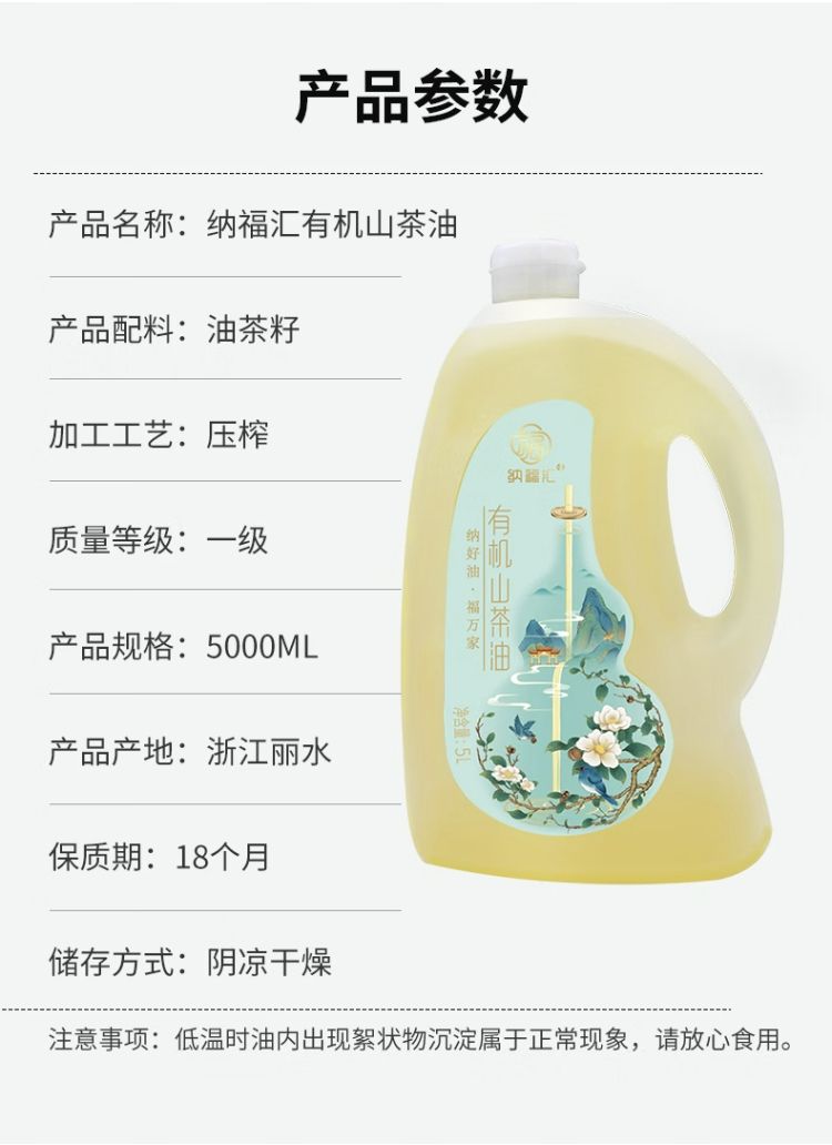 商品名称:纳福汇 有机山茶油 5L