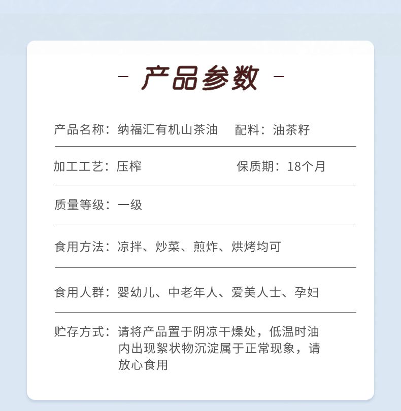 商品名称:纳福汇 有机山茶油 500ml