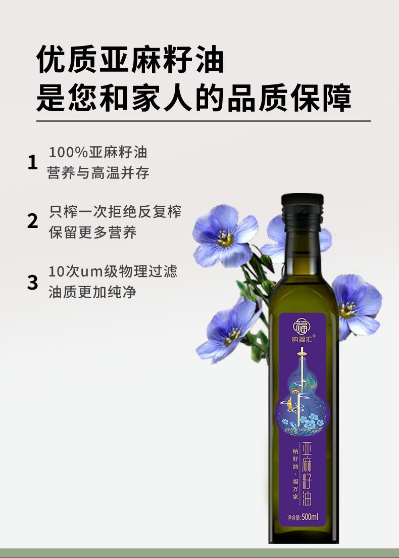 商品名称:纳福汇 冷榨亚麻籽油 500ml