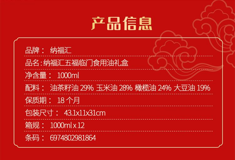 商品名称:纳福汇 山茶橄榄调和油礼盒 1000ml