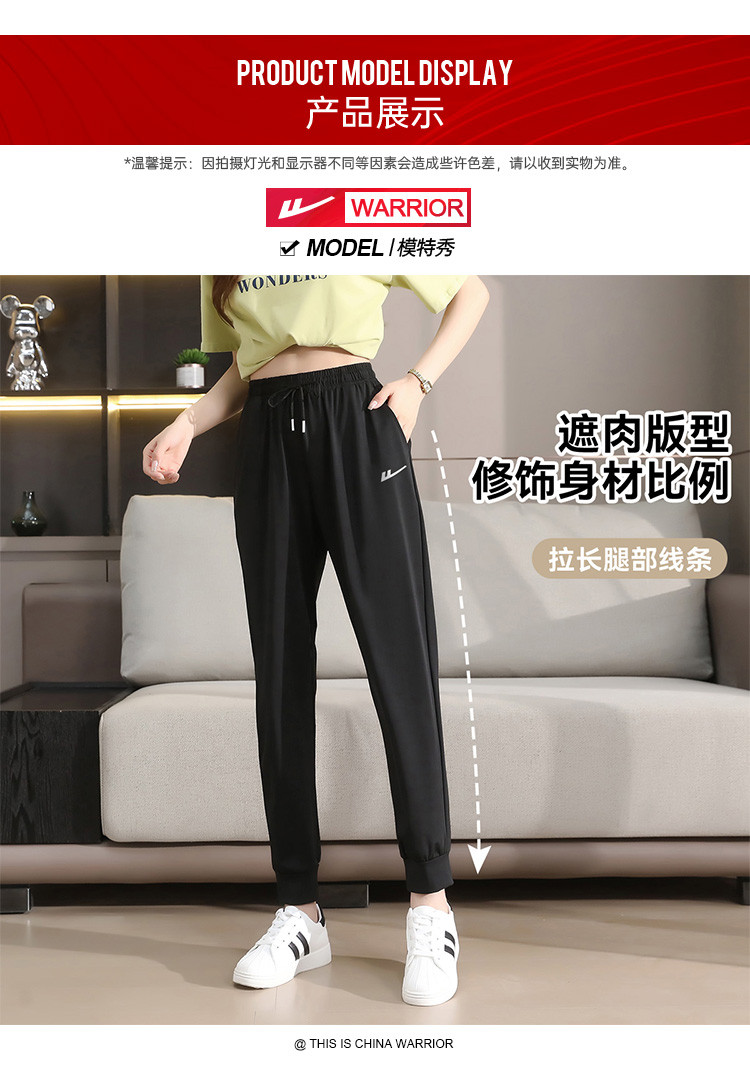 商品名称:【轻薄透气】夏季薄款冰丝凉感女式休闲裤户外休闲女裤束脚裤 050387