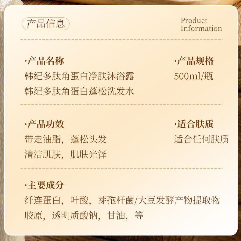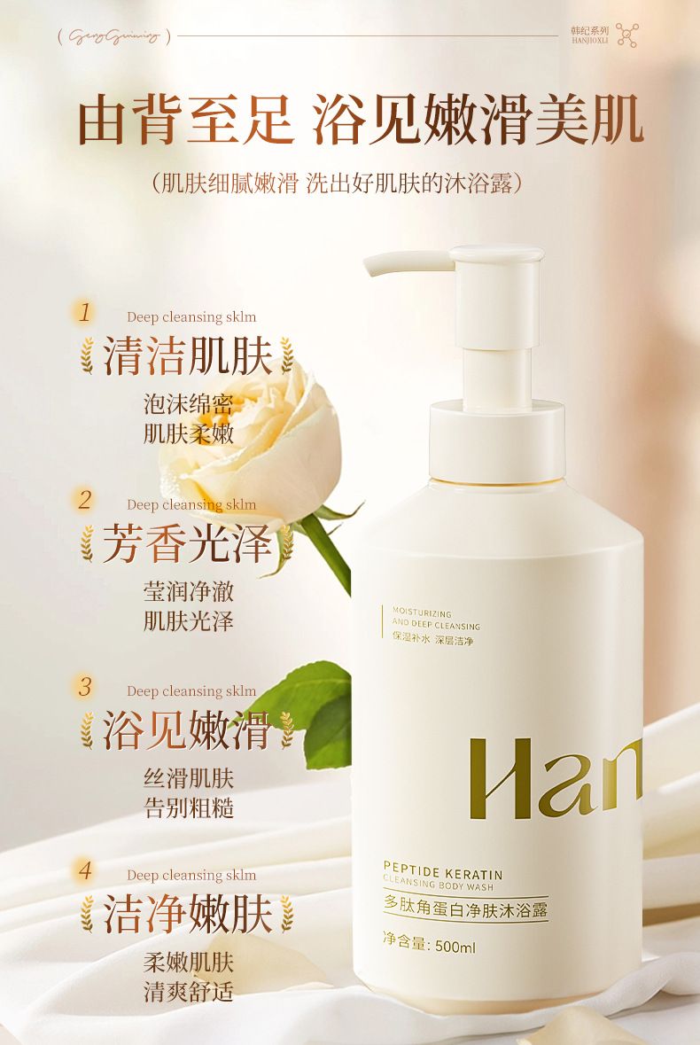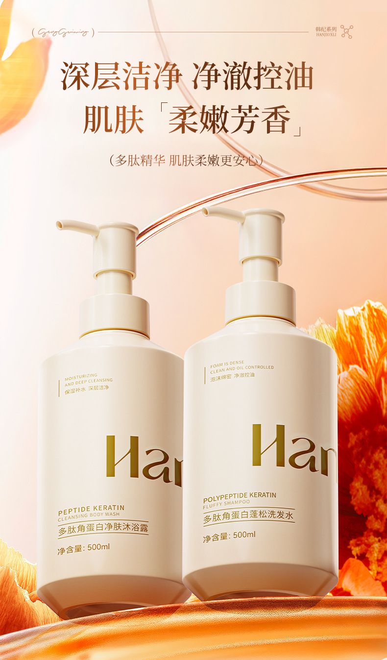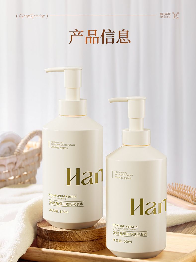 商品名称:Hankey/韩纪 多肽角蛋白净肤沐浴露 蓬松洗发水 500ml