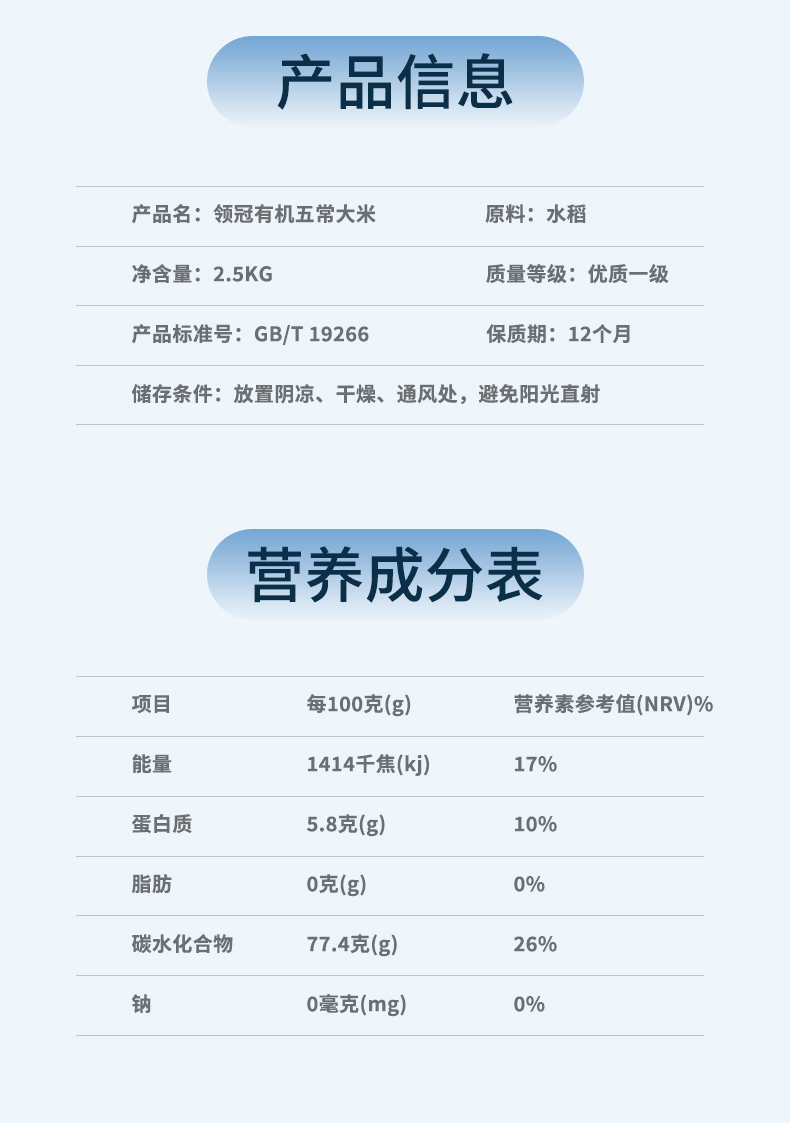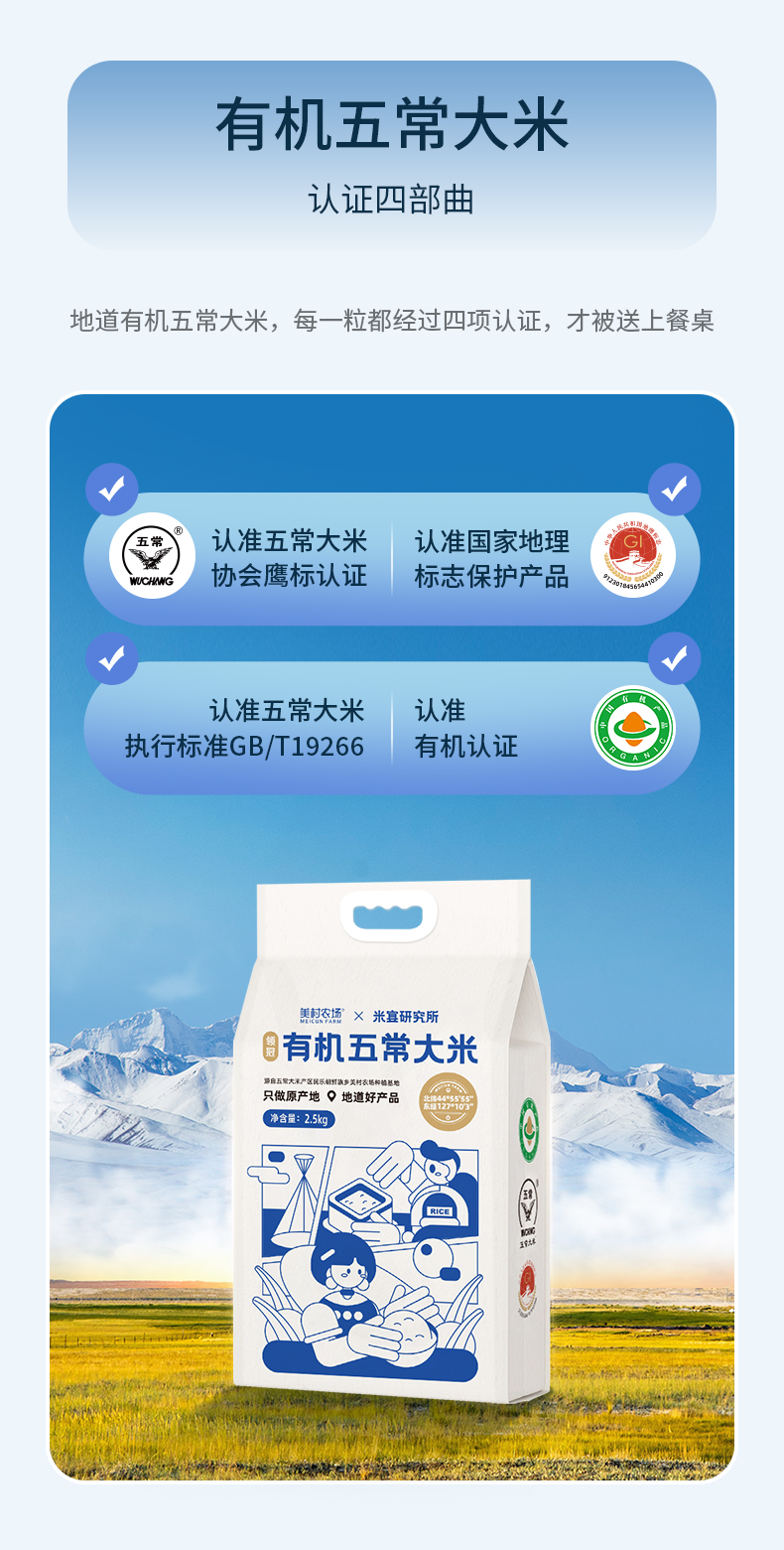 商品名称:美村农场 领冠有机五常大米 2.5kg