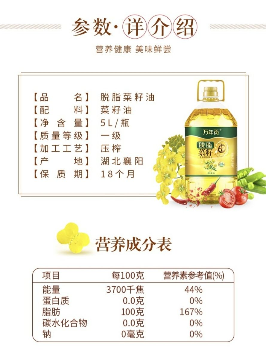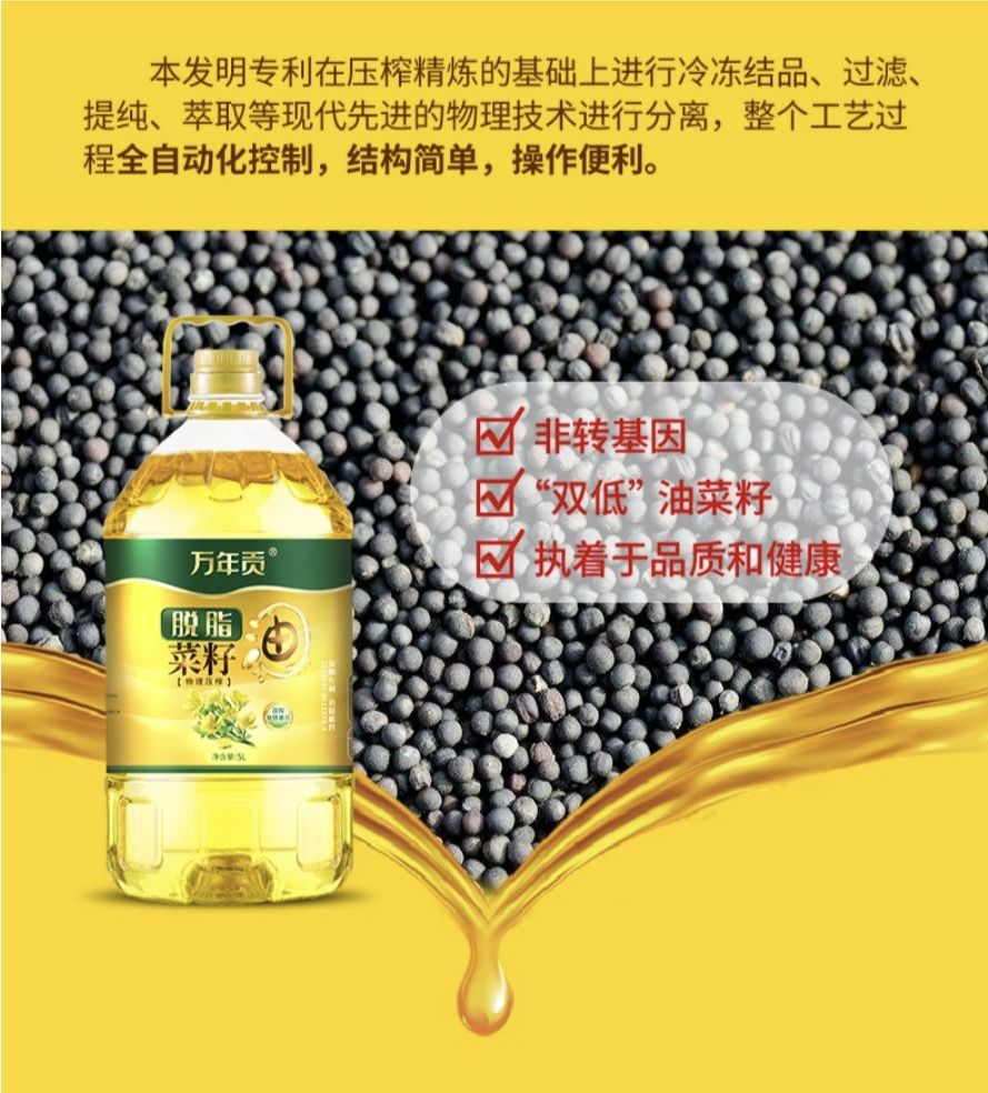 商品名称:万年贡 脱脂菜籽油 5L