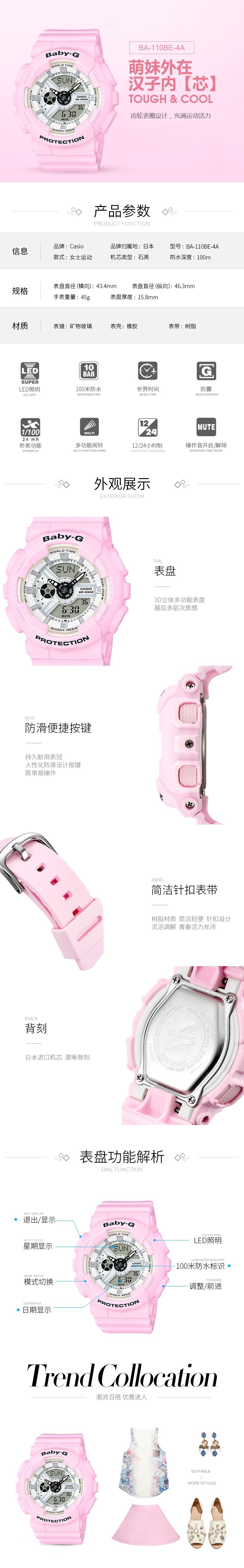 商品名称:卡西欧 BABY-G系列电子手表 BA-110BE-4A 粉色