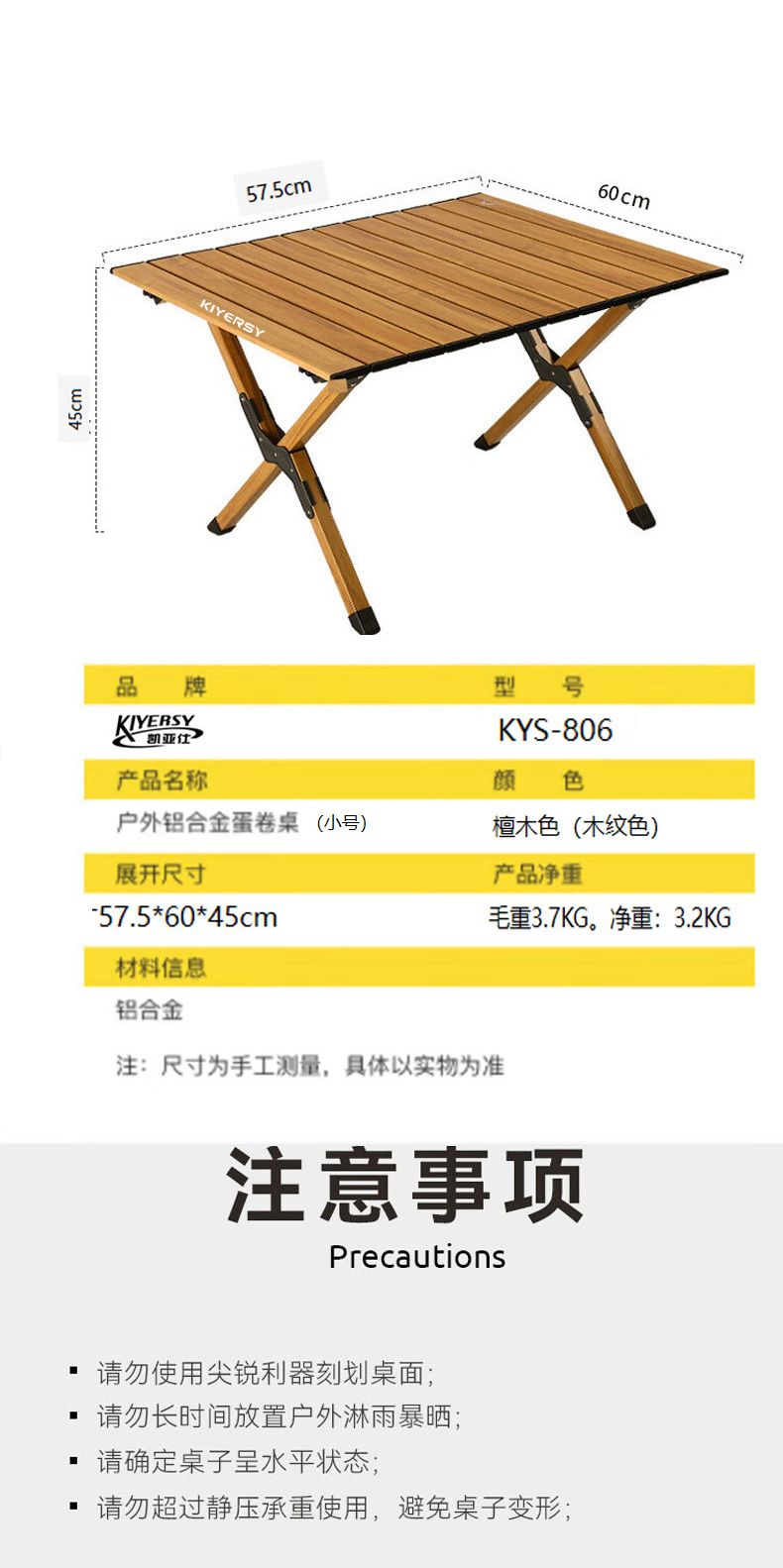 商品名称:凯亚仕户外折叠铝合金蛋卷桌(小号)KYS-806