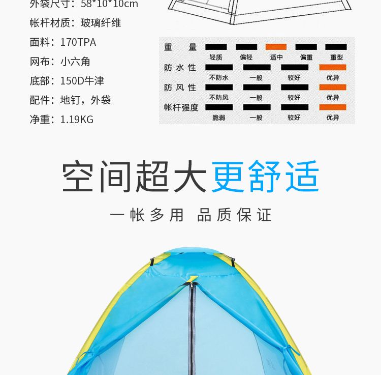 商品名称:凯亚仕双人户外休闲帐篷KYS-103