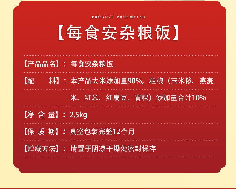 商品名称:每食安杂粮米饭2.5kg 东北杂粮米饭(大米玉米糁燕麦米红米红扁豆青稞) 杂粮米饭2.5kg