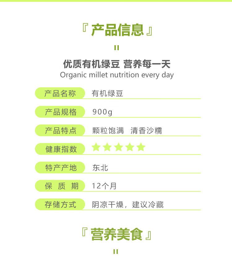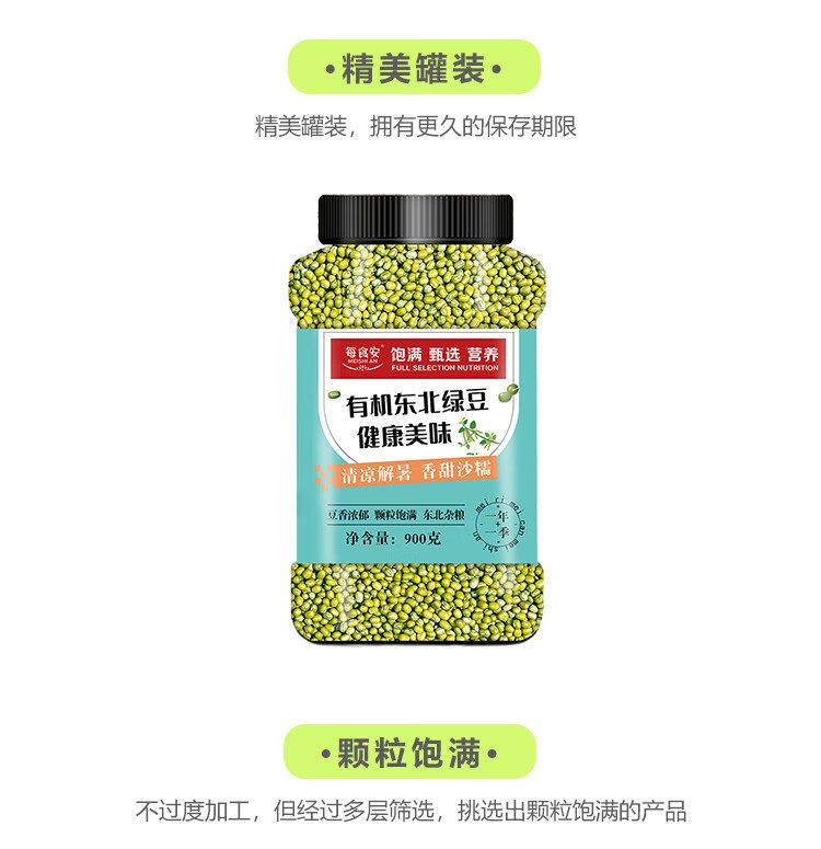 商品名称:每食安有机绿豆900g罐装(五谷杂粮东北粗粮发豆芽打豆浆大米粥米伴侣)