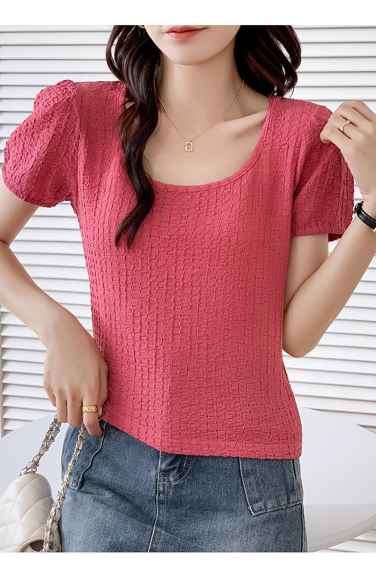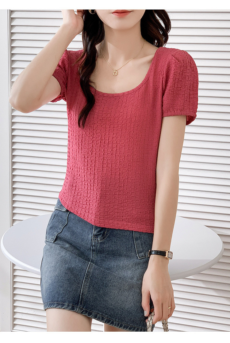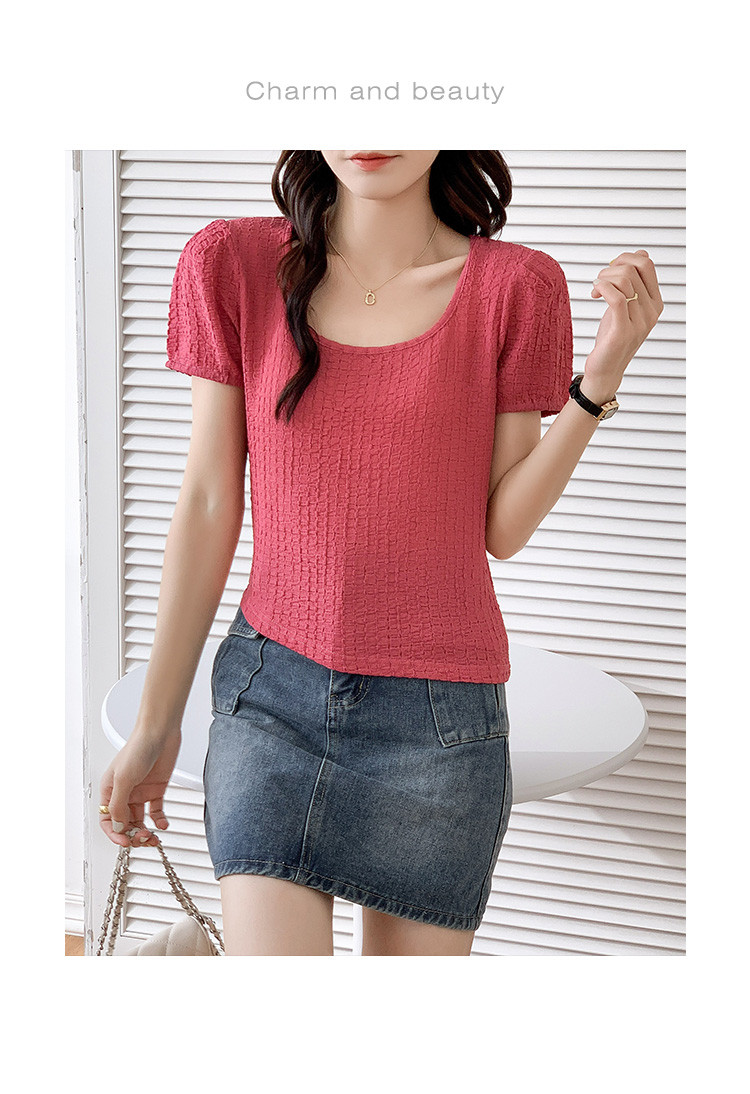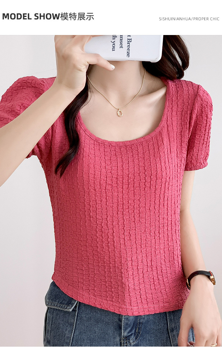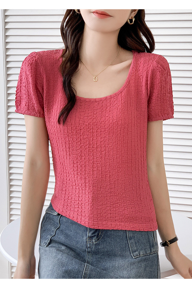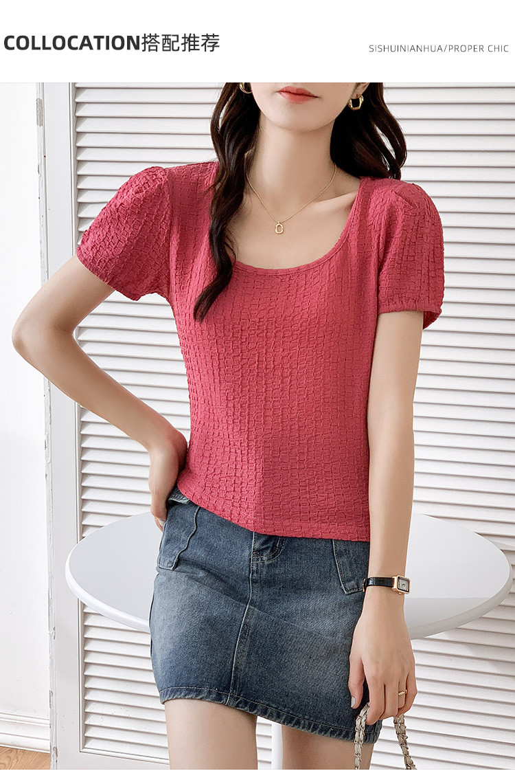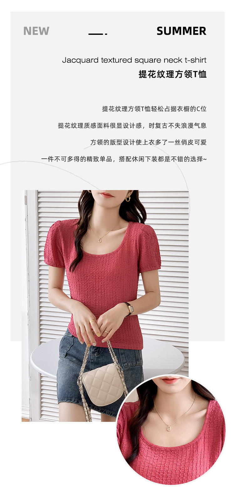 商品名称:短袖夏季时尚女装方领短T恤高腰短款显瘦百搭上衣女 267928