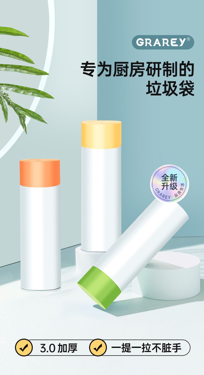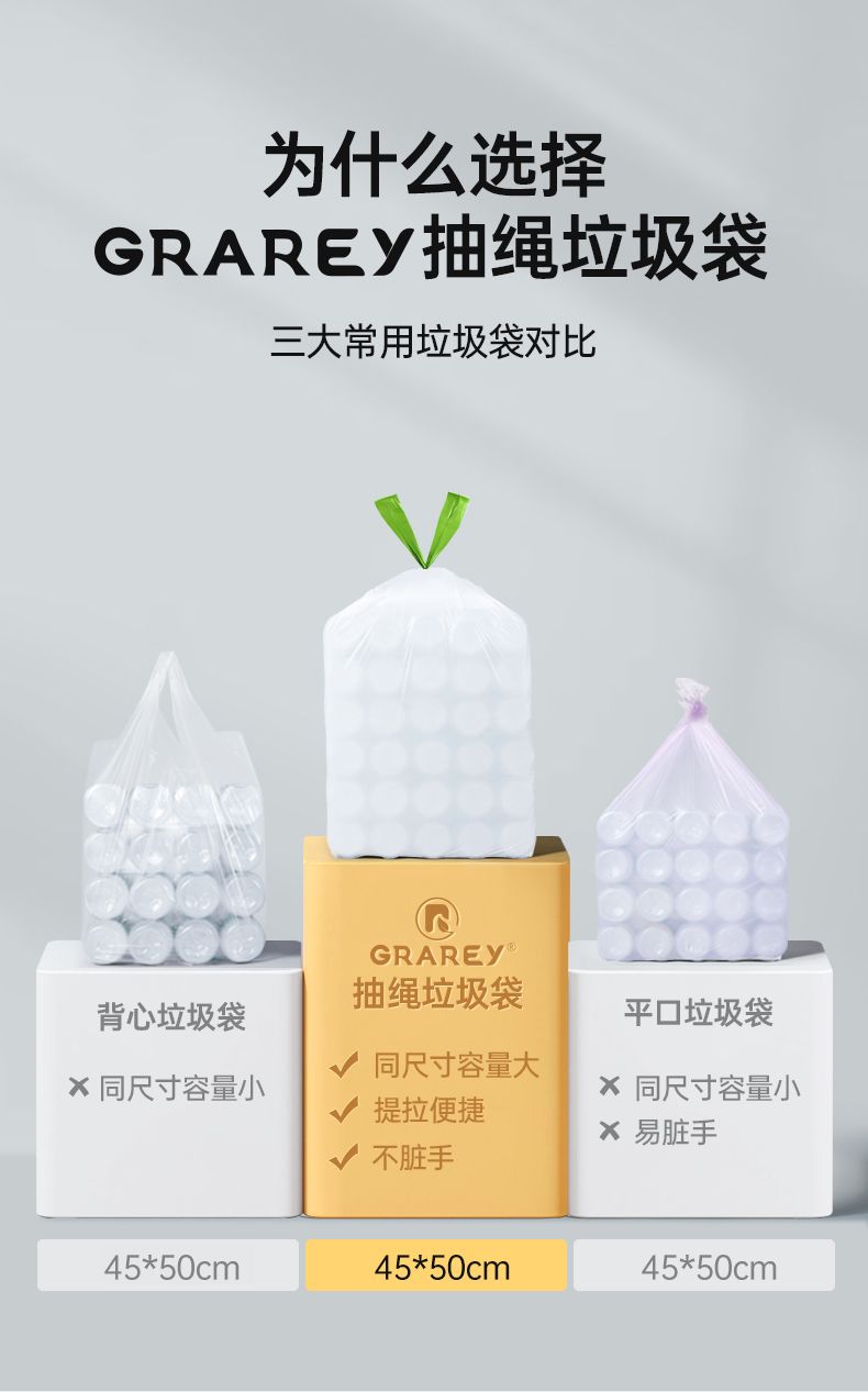 商品名称:GRAREY(格瑞亚)厨房垃圾袋家用厨余加厚抽绳垃圾袋手提式钢袋收纳大容量抽绳垃圾袋 3.0版本家庭装多色可选
