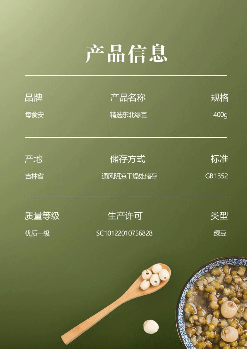 商品名称:每食安东北杂粮粥米伴侣 东北绿豆400g*2