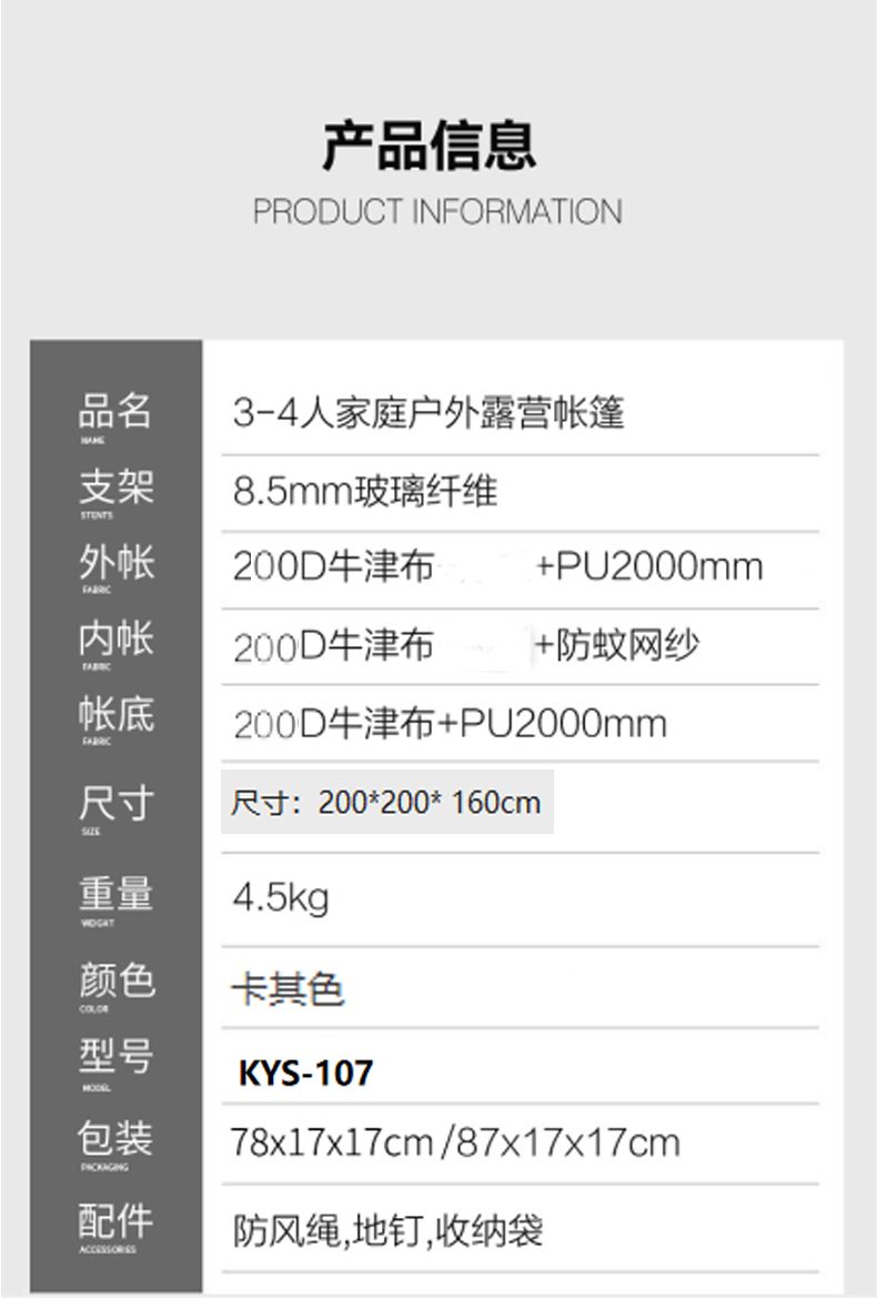 商品名称:凯亚仕户外便携式折叠露营帐篷KYS-107
