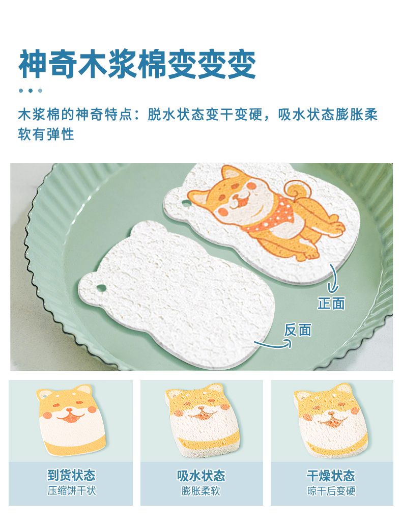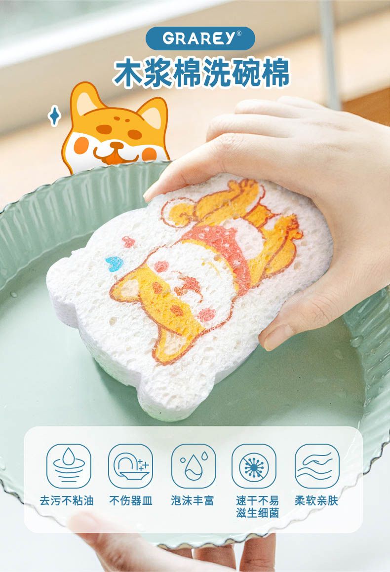 商品名称:GRAREY(格瑞亚)木浆洗碗海绵擦婴儿刷碗百洁布刷锅清洁神器压缩纳米魔力擦肥宅/撒娇柴犬洗碗棉