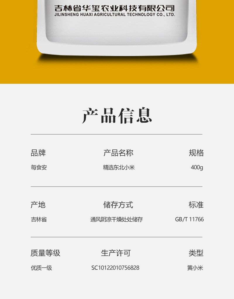 商品名称:每食安东北杂粮粥米伴侣 东北小米400g*2