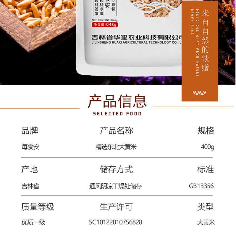 商品名称:每食安东北杂粮粥米伴侣 东北糙米400g*2
