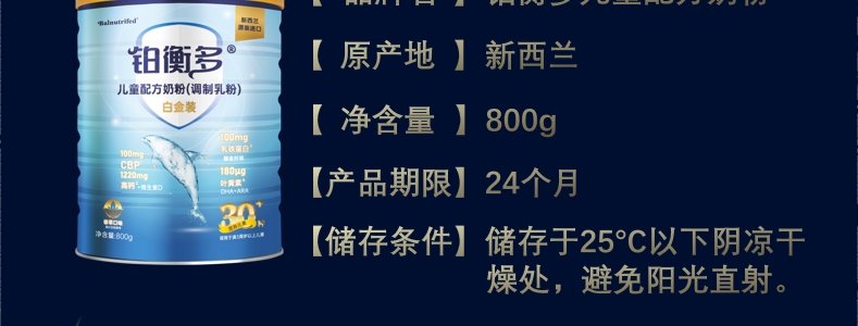 商品名称:铂衡多 儿童配方奶粉 800g/罐