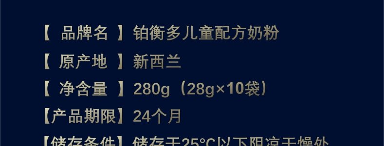 商品名称:铂衡多 儿童配方奶粉 28g*10袋/盒