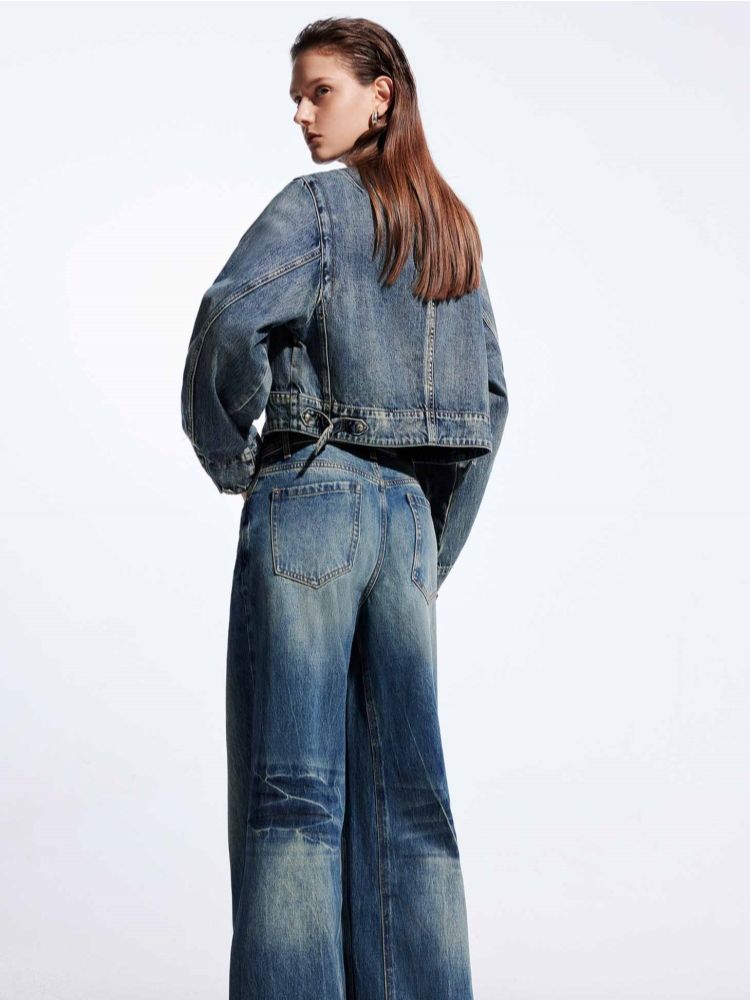 【复古水洗】夏季复古小个子宽松直筒裤长裤牛仔裤女 822618