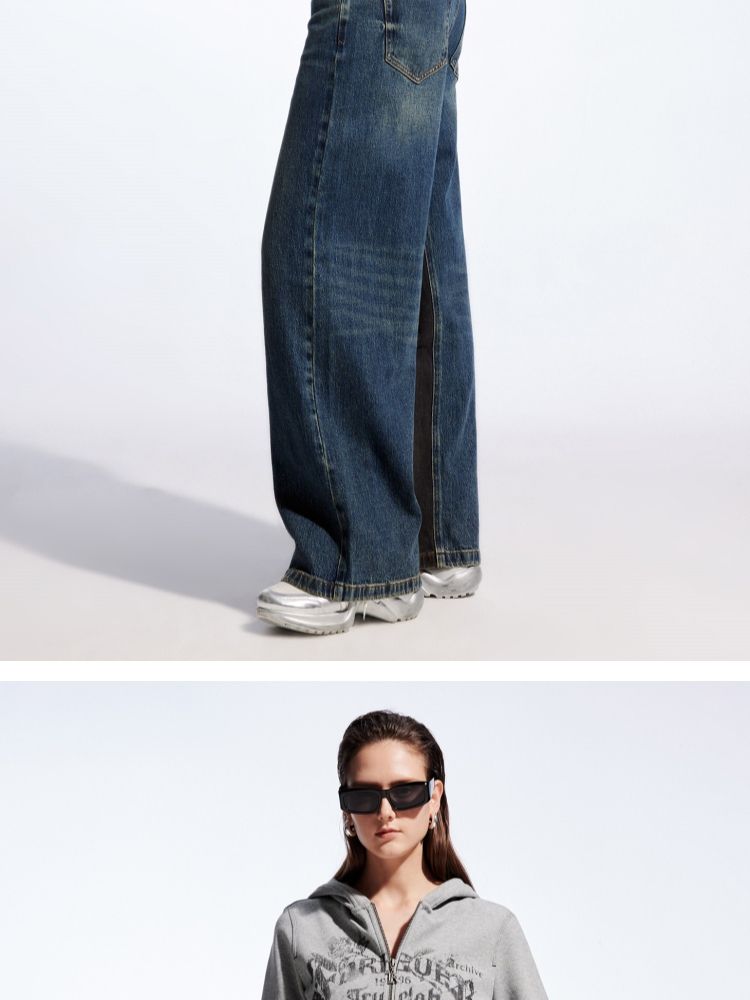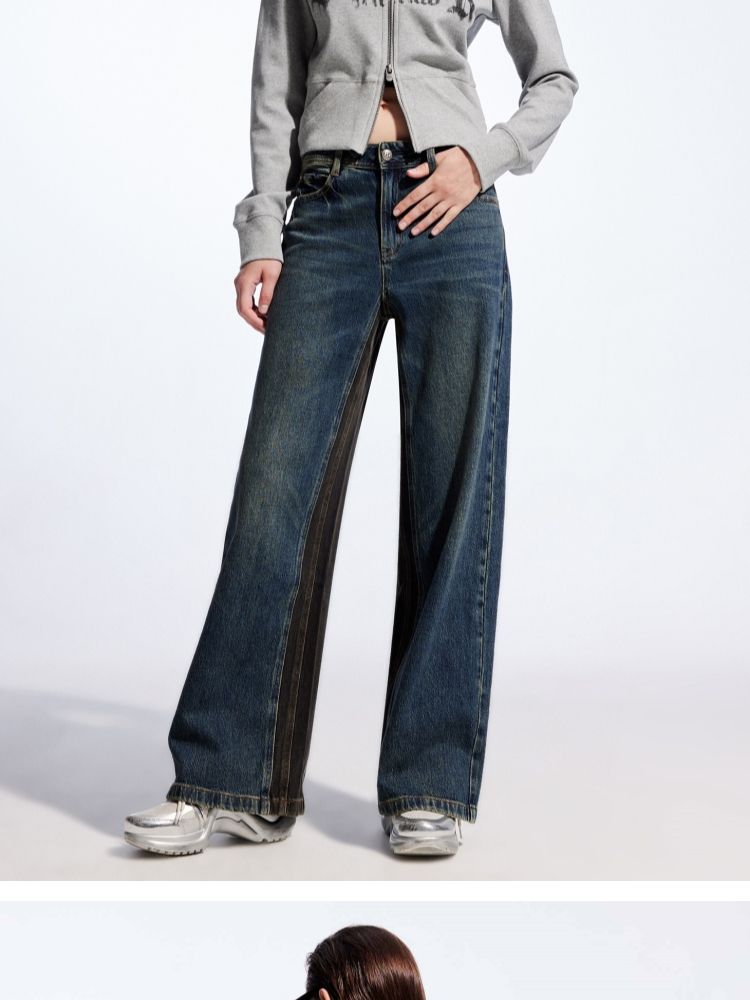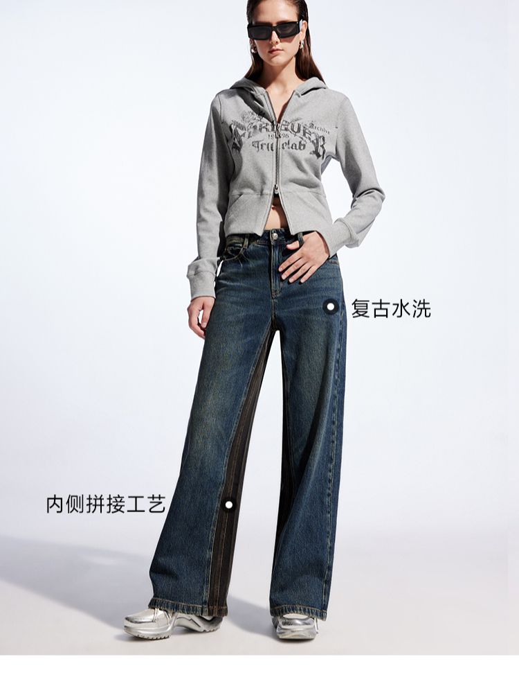 商品名称:【复古水洗】夏季复古小个子宽松直筒裤长裤牛仔裤女 822618