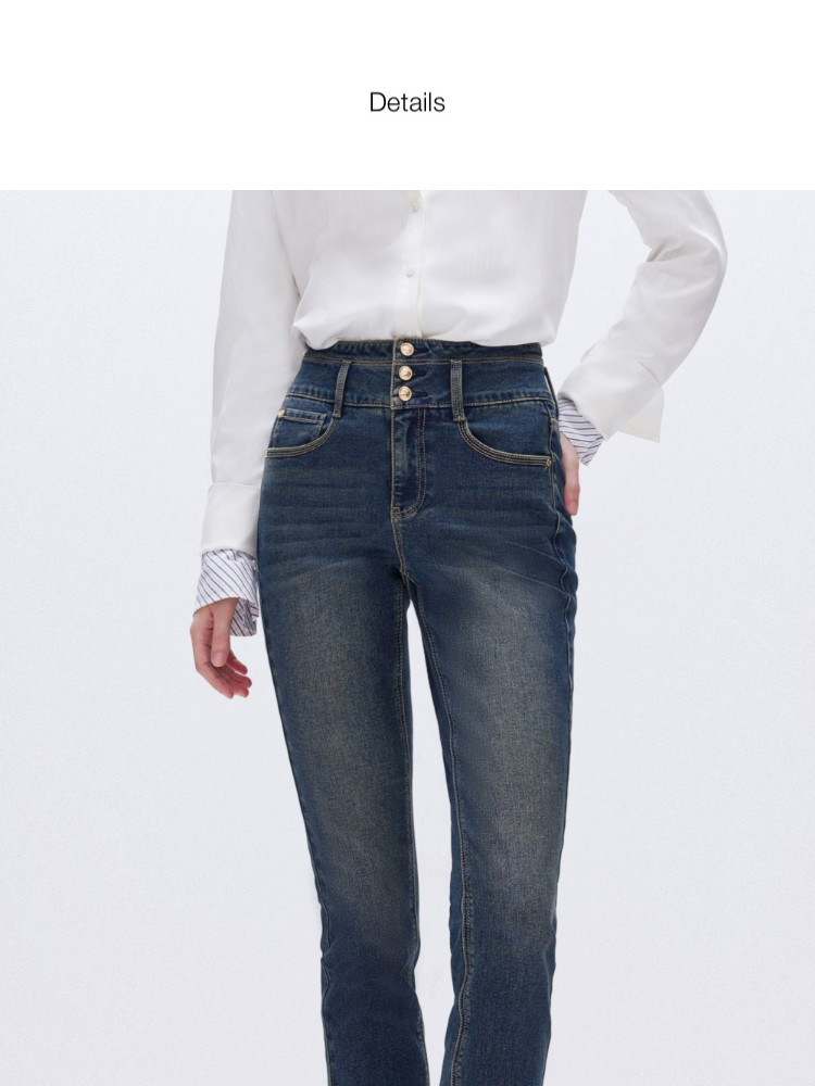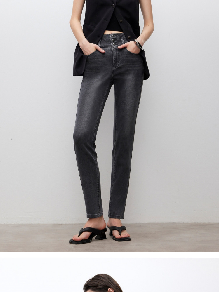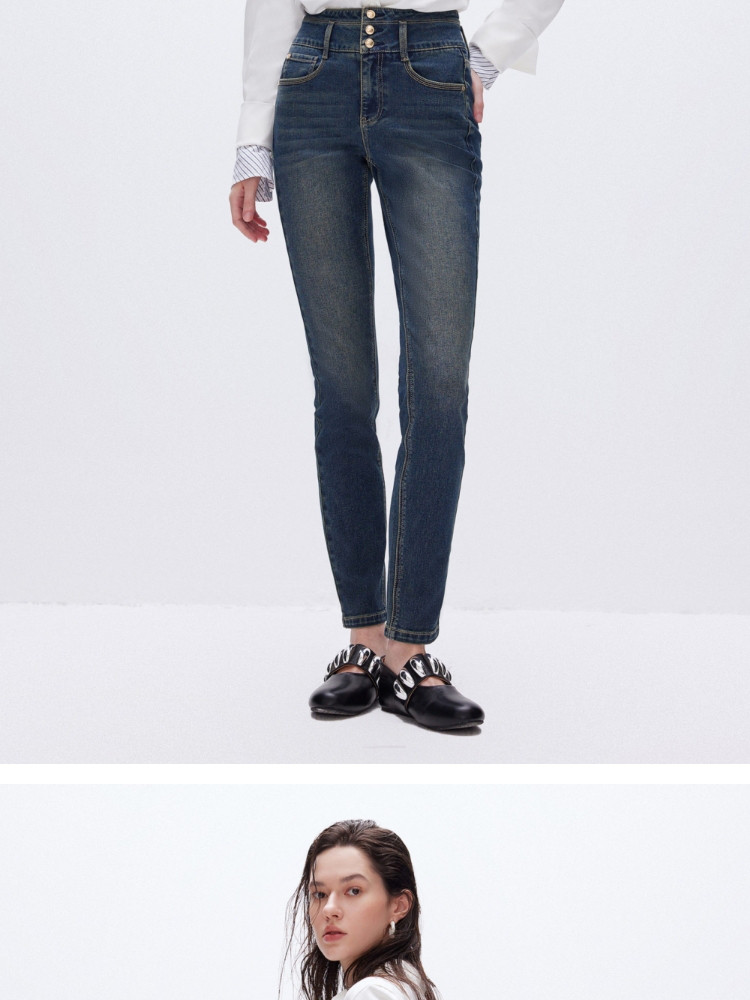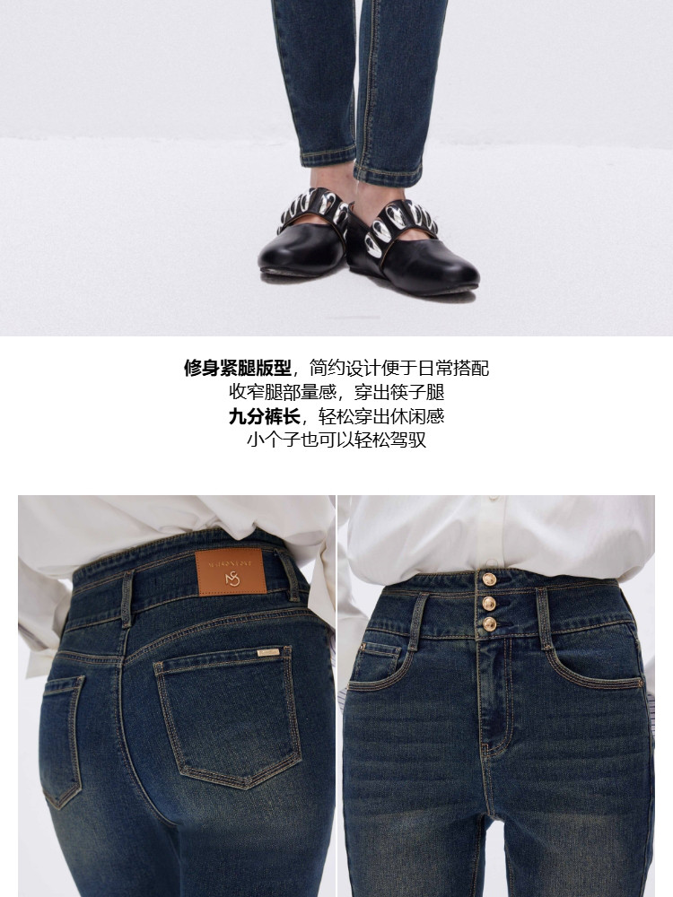 商品名称:【九分紧身裤】25夏季含莱赛尔复古磨白高腰九分铅笔裤牛仔裤女 276186