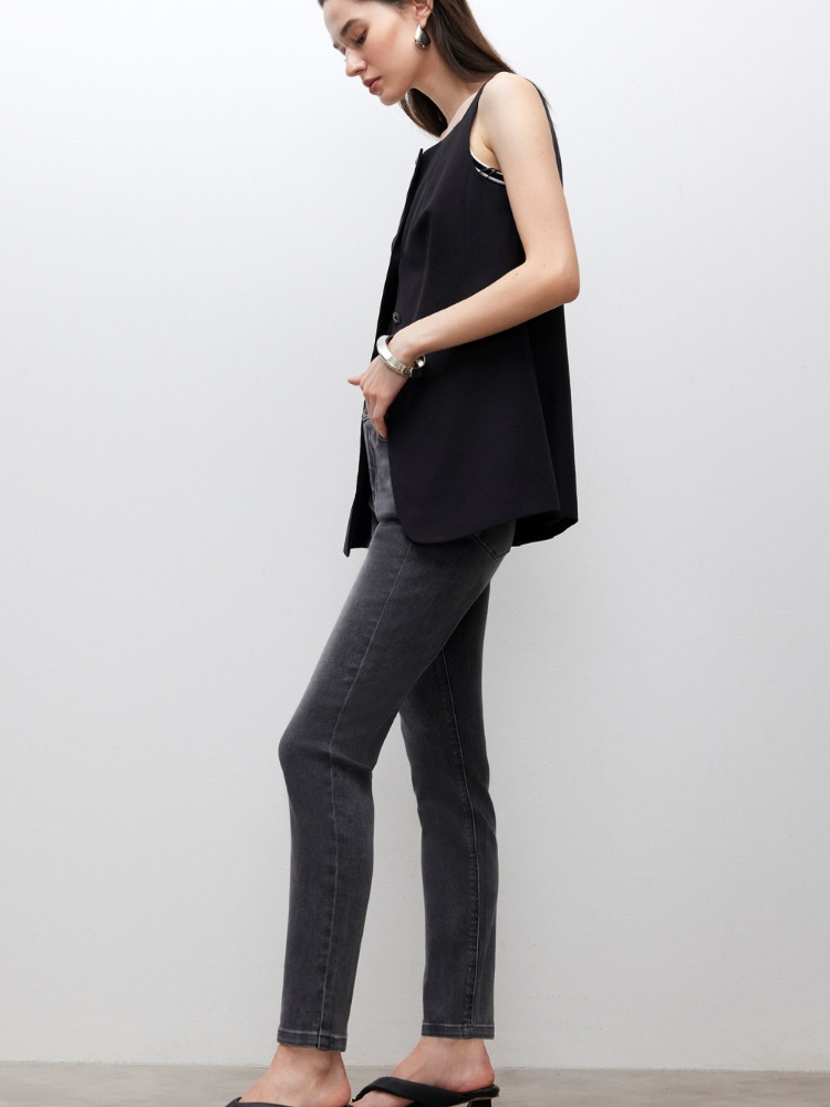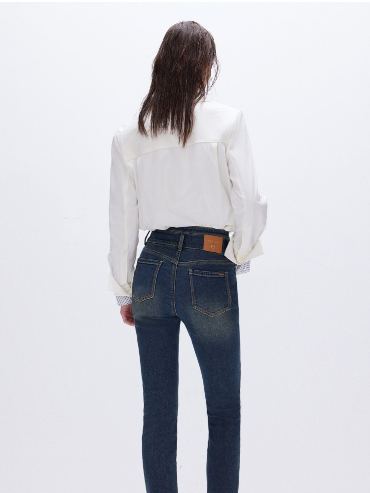 【九分紧身裤】25夏季含莱赛尔复古磨白高腰九分铅笔裤牛仔裤女 276186