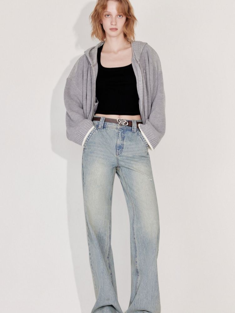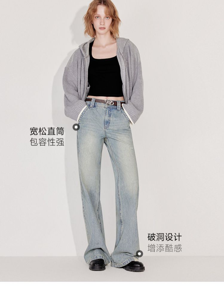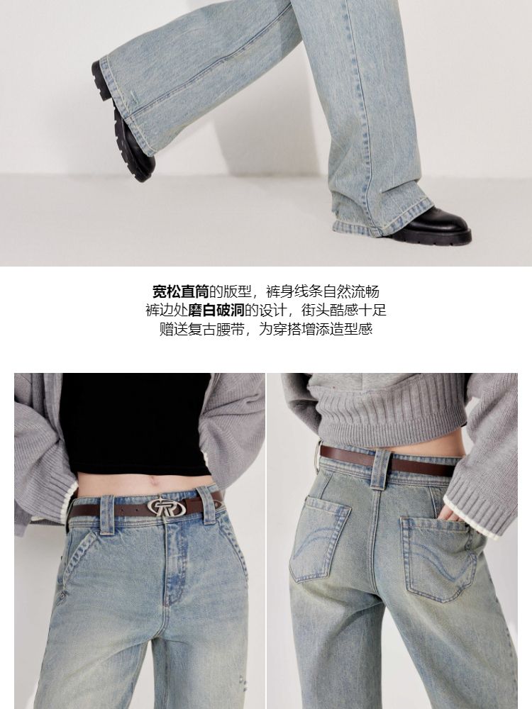 商品名称:【送腰带】2025春季潮酷街头风高腰宽松直筒长裤牛仔裤女 145690