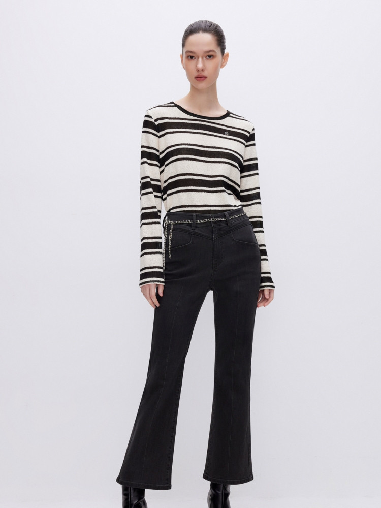 商品名称:【高腰喇叭裤】2025夏季时尚显瘦九分裤牛仔裤女 035162