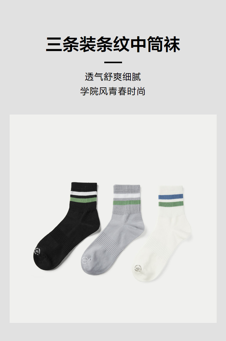 商品名称:【3双装】2025透气舒爽柔软细腻条纹学院风男士袜子 541256