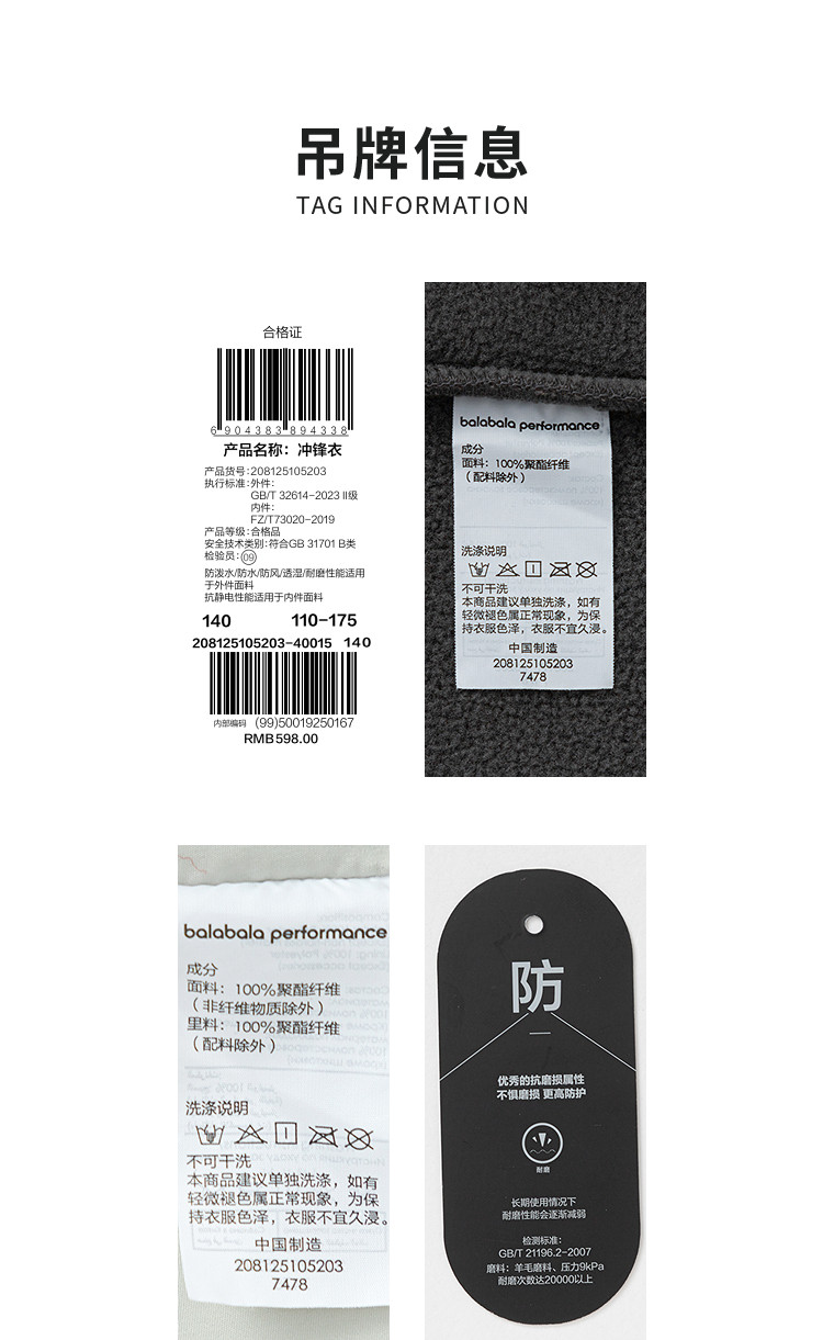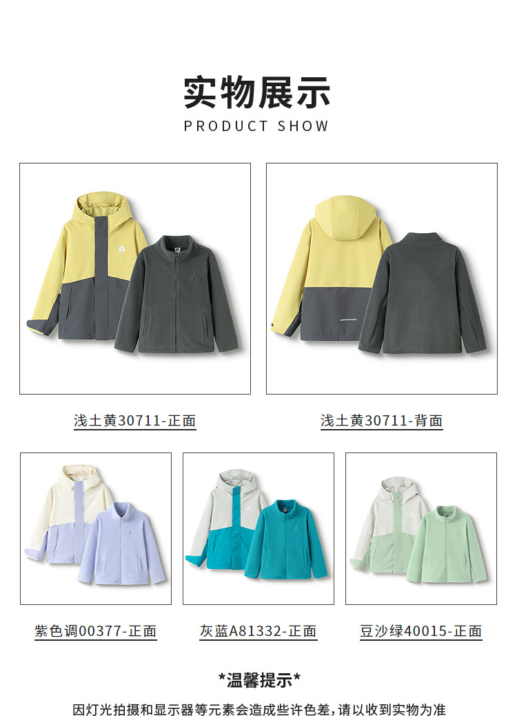 商品名称:冲锋衣两件套儿童外套男童女童2025春新款大童摇粒绒防水透湿 105733