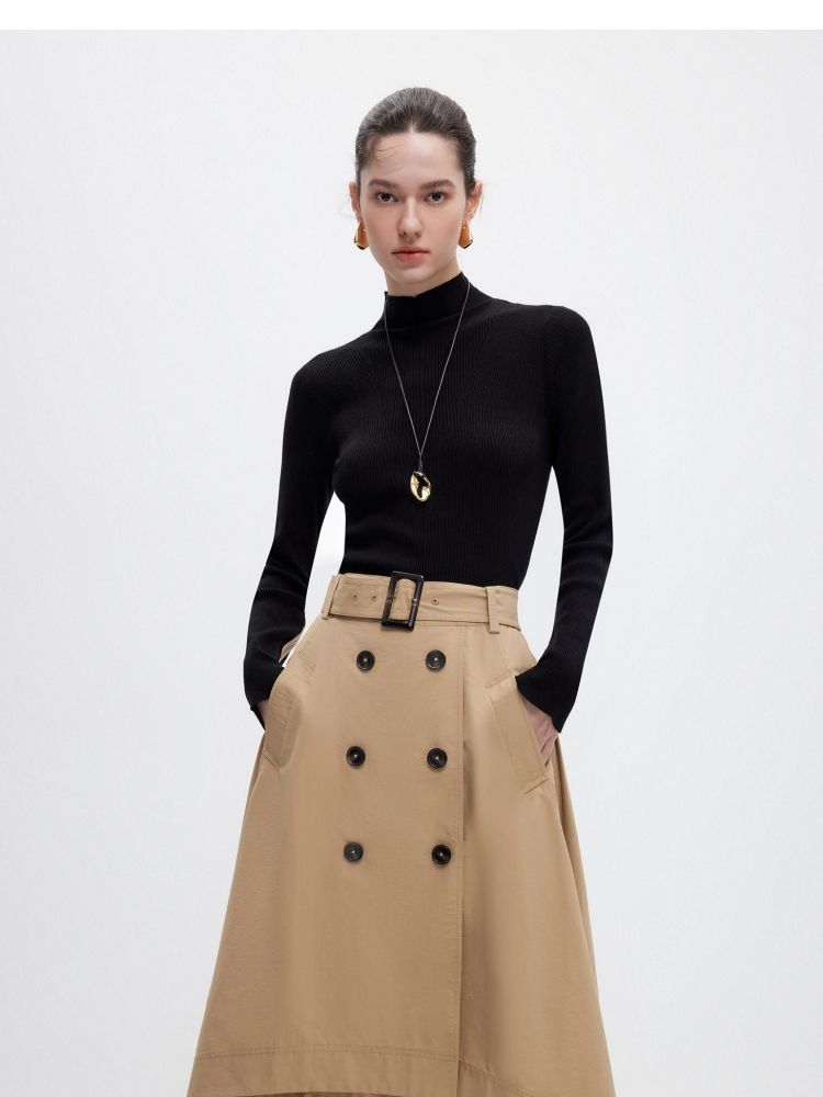 【高弹连衣裙】春秋季翻领直筒长袖纽扣H型通勤连衣裙女长款 944833