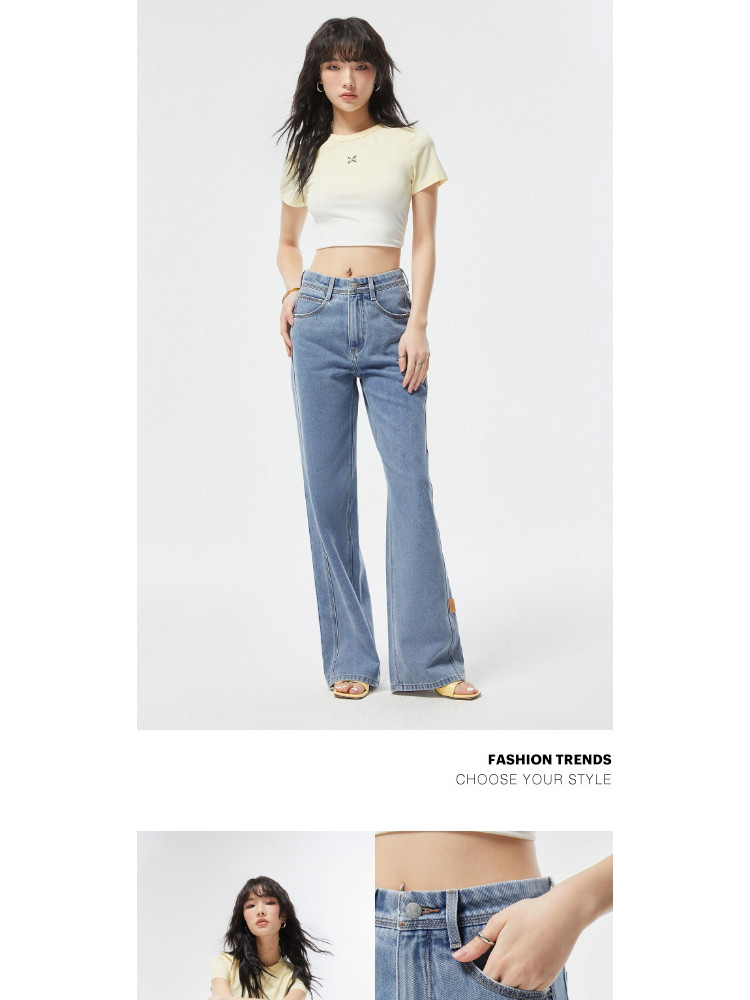 商品名称:【通勤风】夏季高腰宽松阔腿老爹裤牛仔裤女 044442