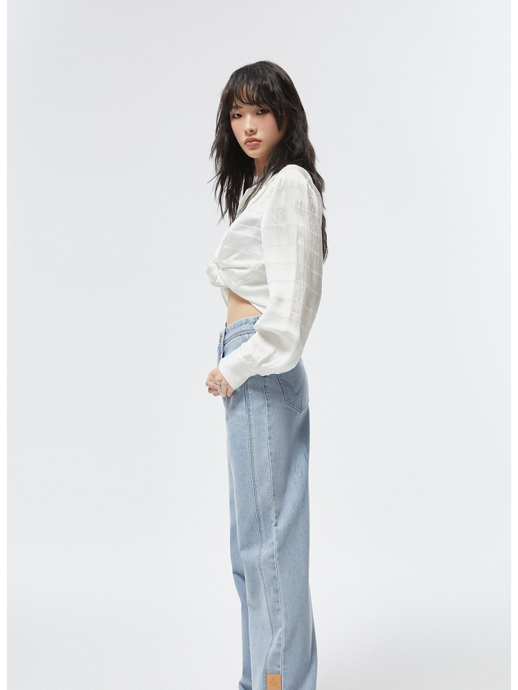 【通勤风】夏季高腰宽松阔腿老爹裤牛仔裤女 044442