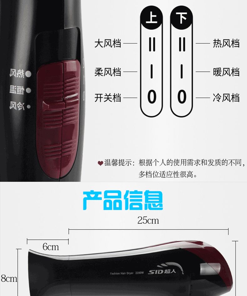 商品名称:SID/超人 家用静音大功率吹风筒便携式吹风机 RD2210