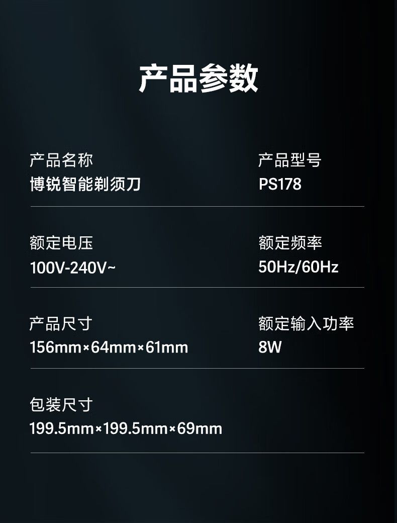 商品名称:POREE博锐 电动剃须刀三头全身防水 PS178