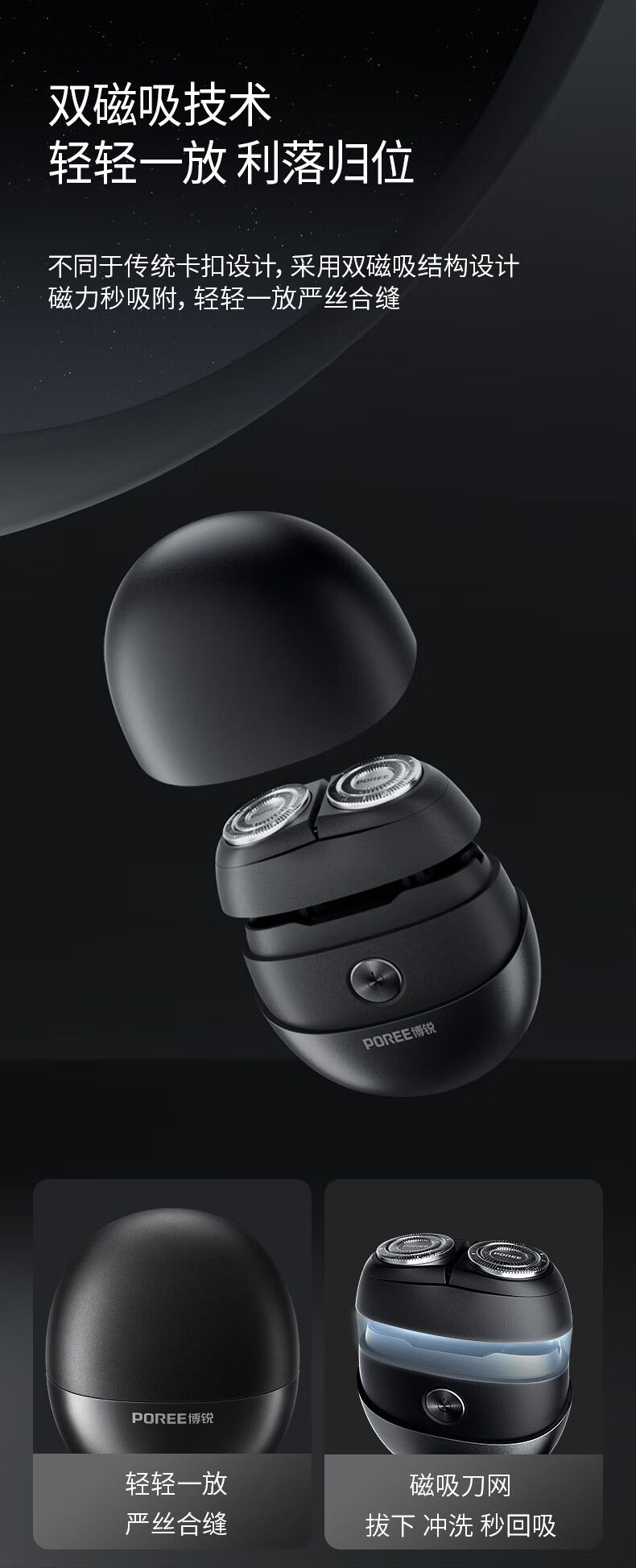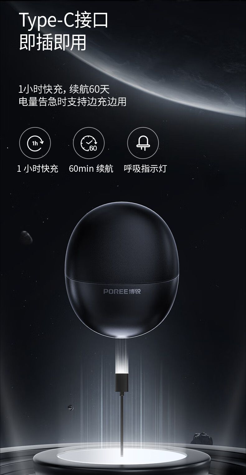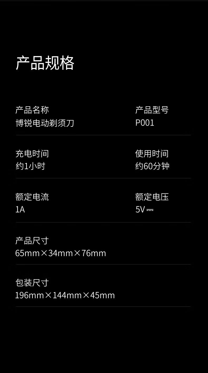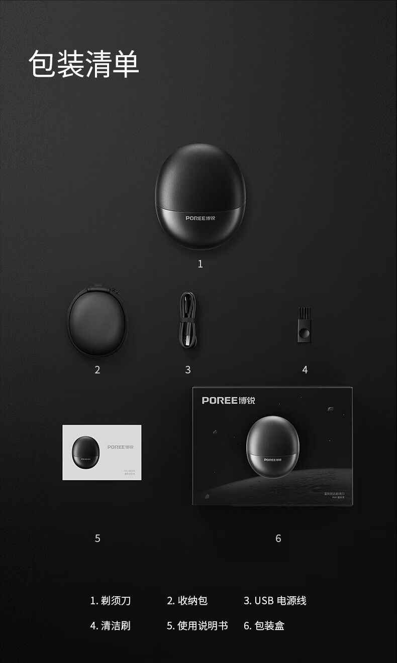 商品名称:博锐 小陨石电动剃须刀男士刮胡刀便携款全身水洗迷你刮胡须刀 星际黑P001