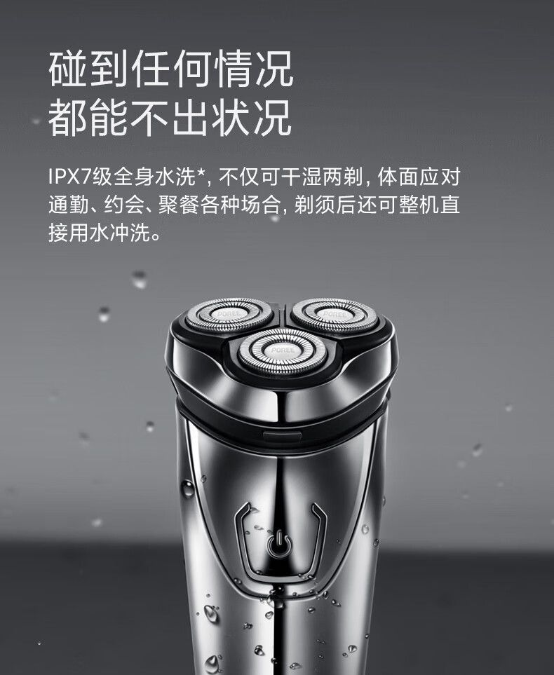 博锐(POREE)剃须刀电动刮胡刀全身水洗刮胡子刀三刀头智能快速充电胡须刀 PS163