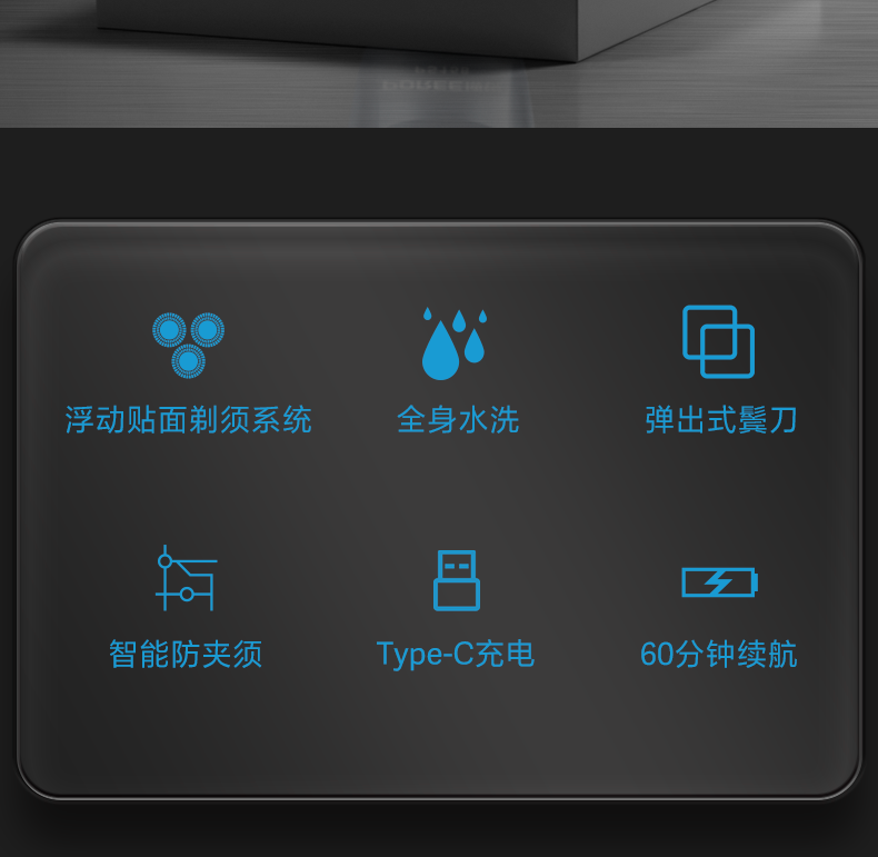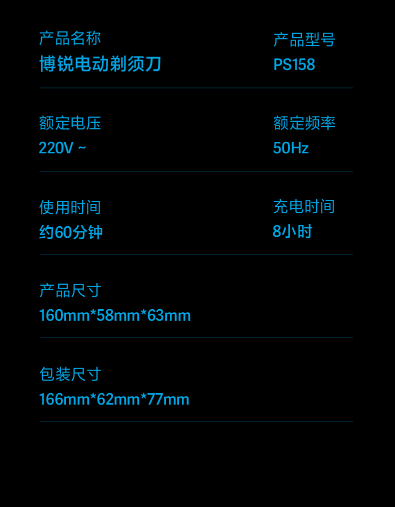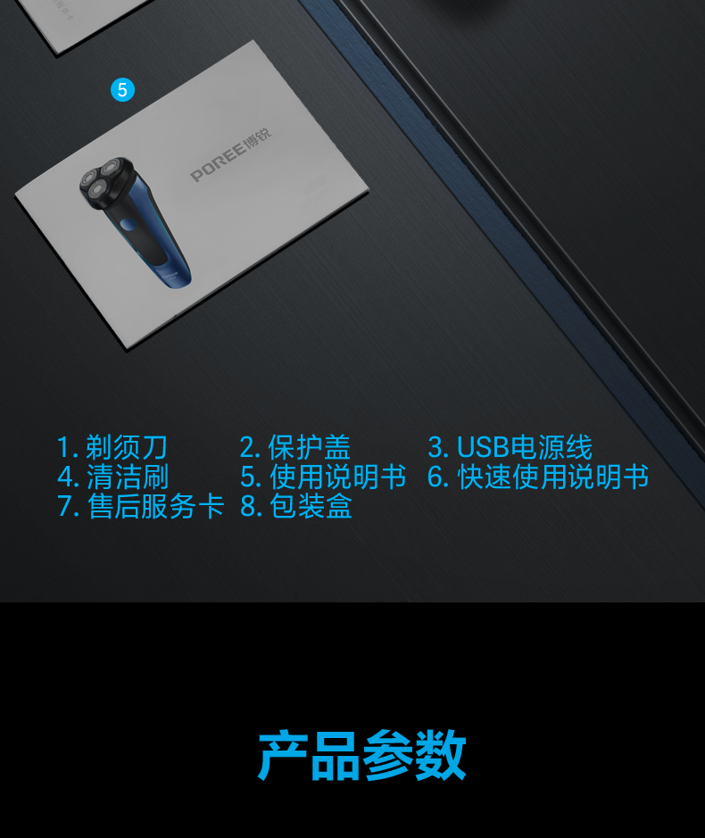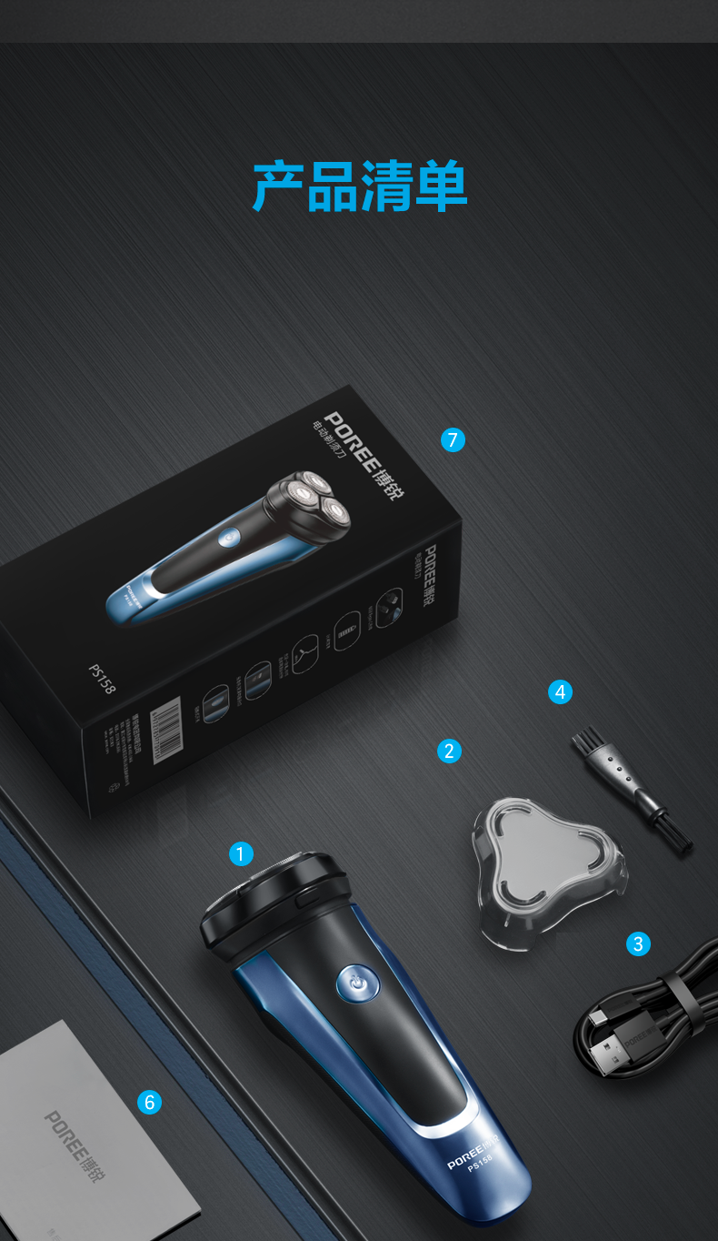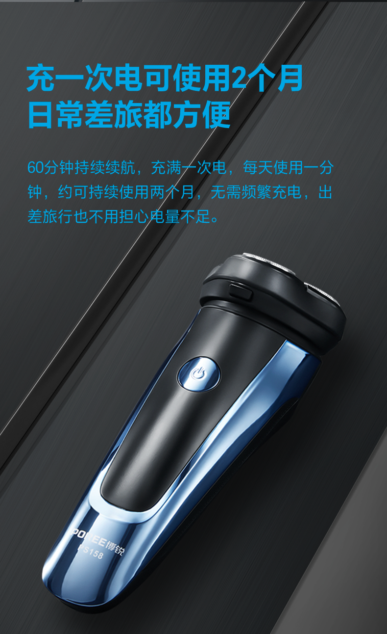 商品名称:博锐 电动剃须刀男士刮胡刀便携式全身水洗智能快充电式新款 PS158