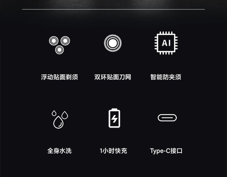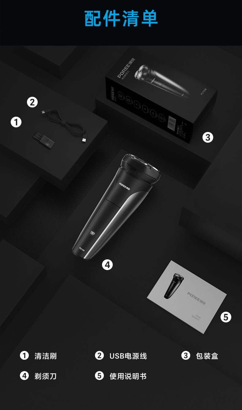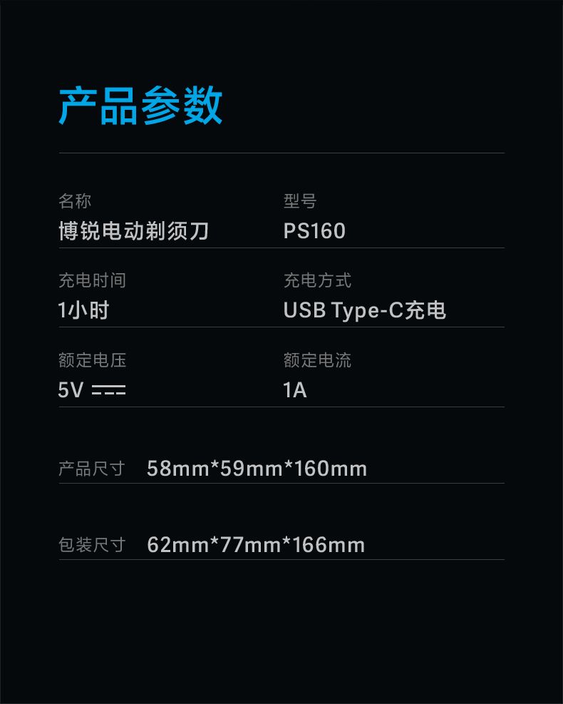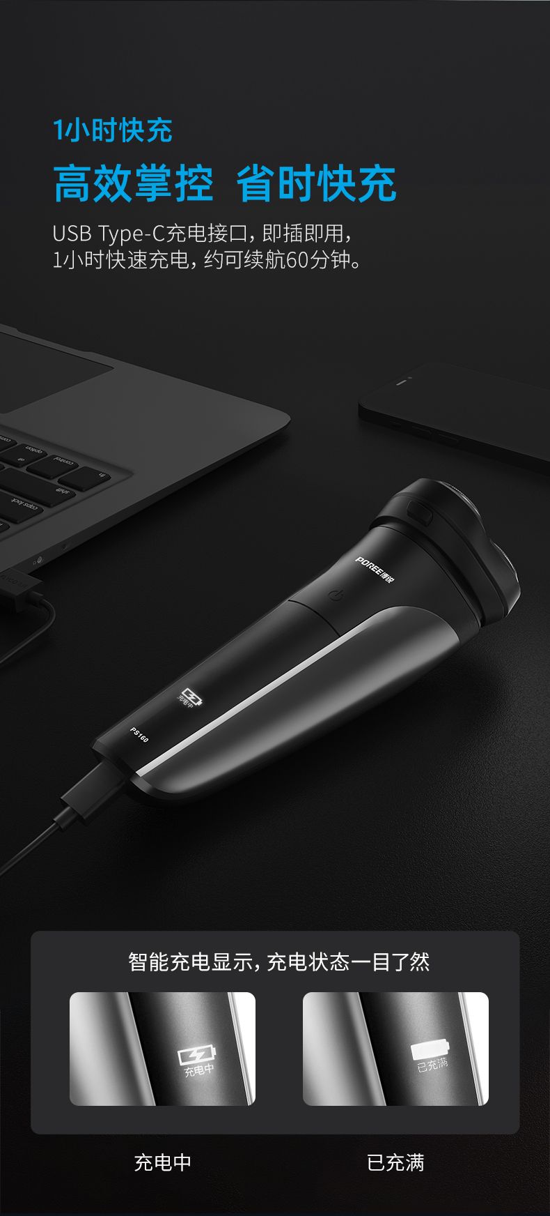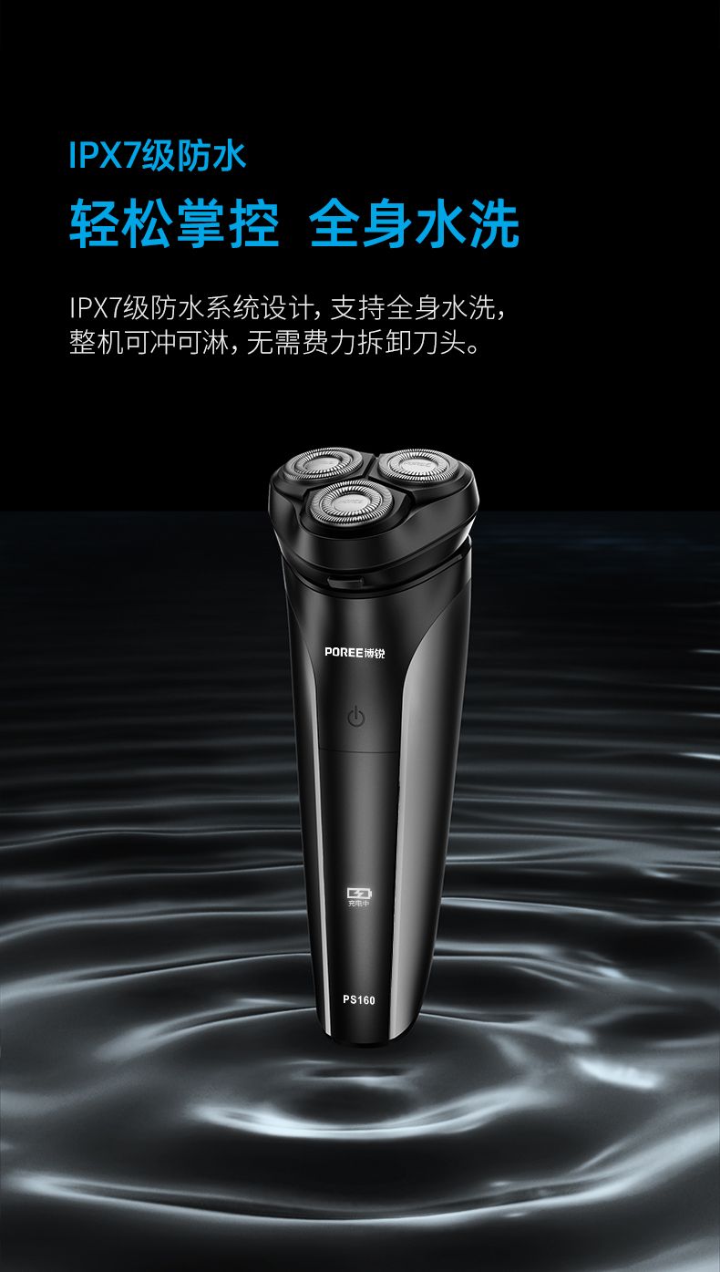 商品名称:博锐 电动剃须刀男士智能防夹须胡须刀全身水洗便携出差旅行三刀浮动头充电式干湿双剃胡须刨PS160