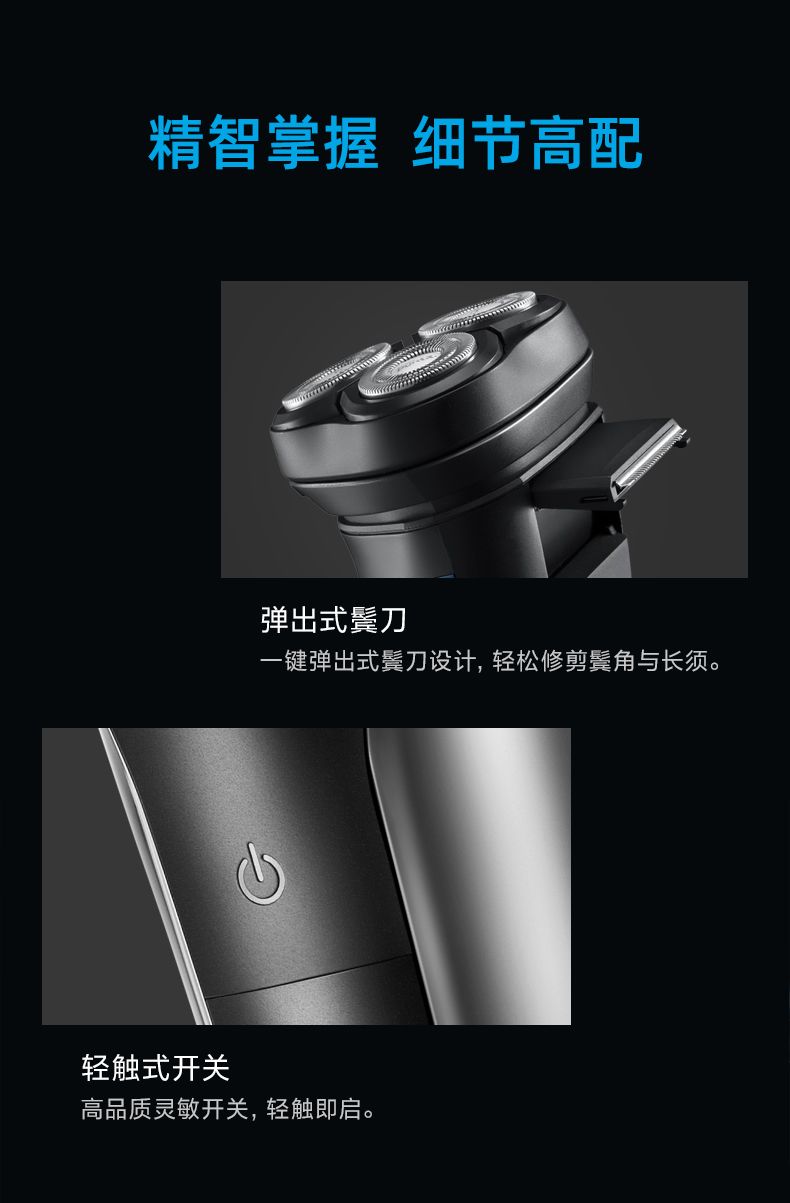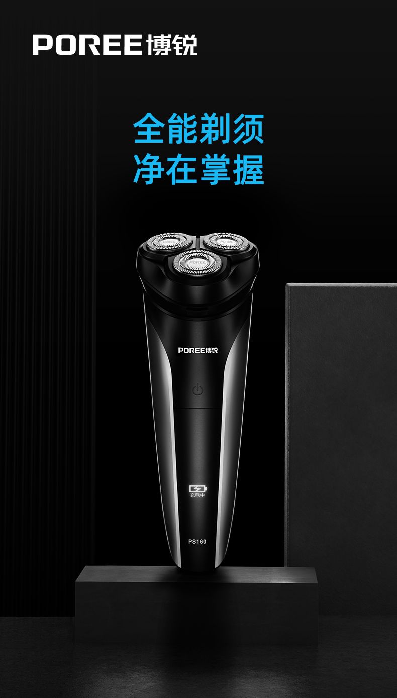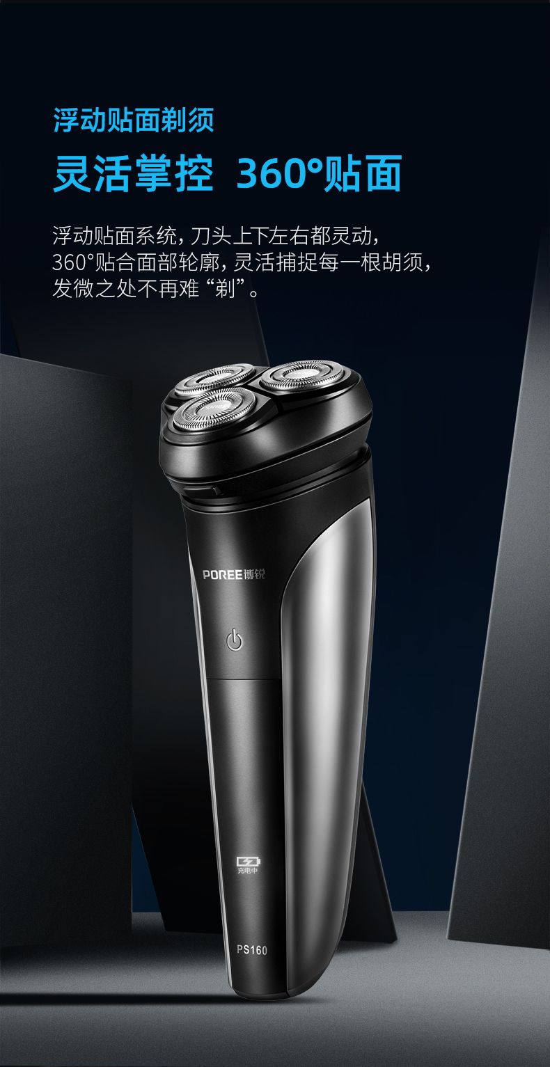 博锐 电动剃须刀男士智能防夹须胡须刀全身水洗便携出差旅行三刀浮动头充电式干湿双剃胡须刨PS160