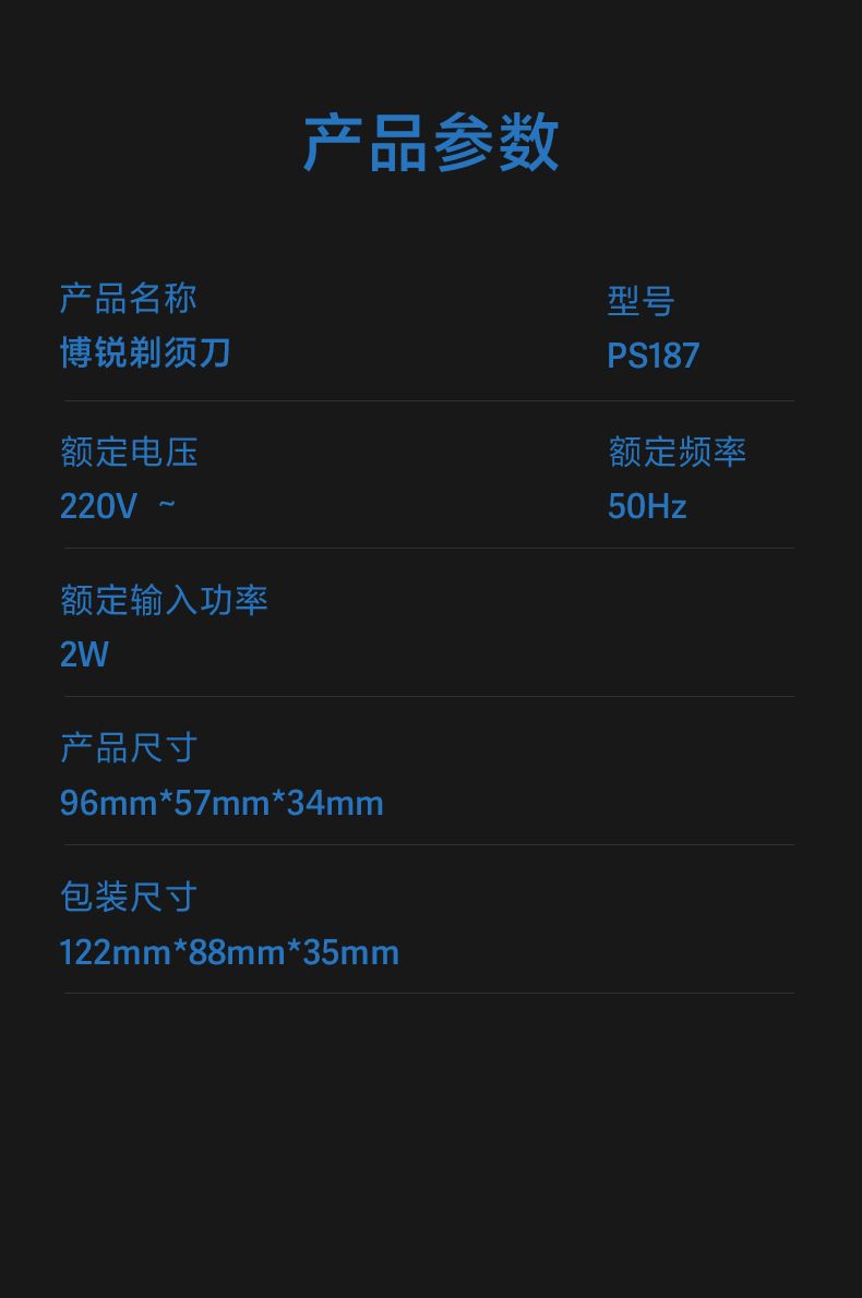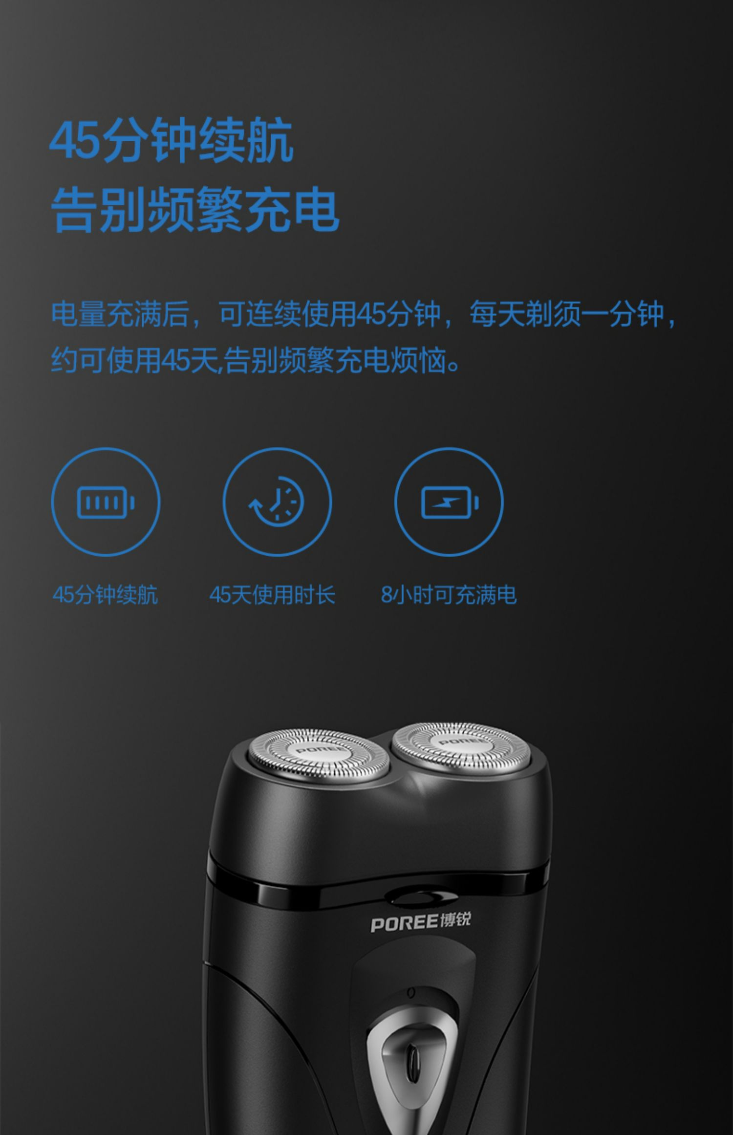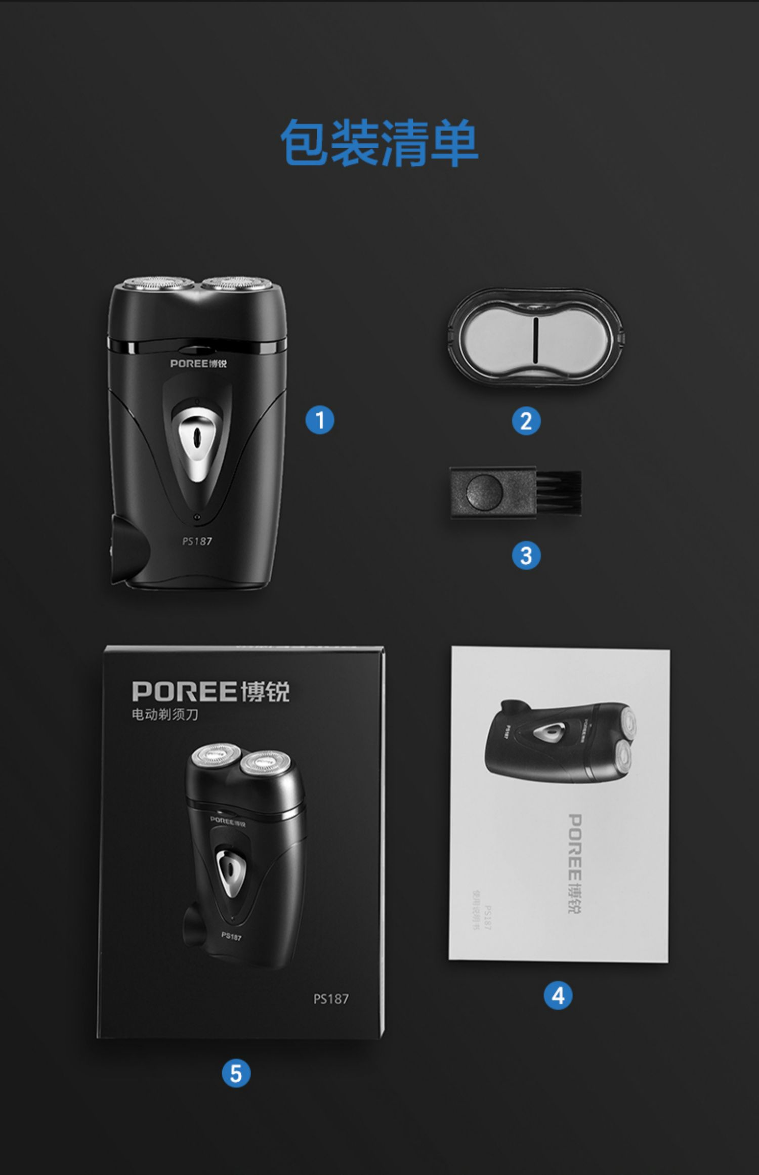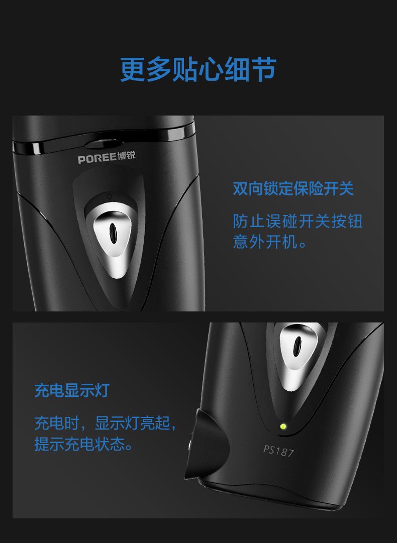 商品名称:博锐 剃须刀电动充电式刮胡刀男士双刀头便携剃胡须刀 PS187