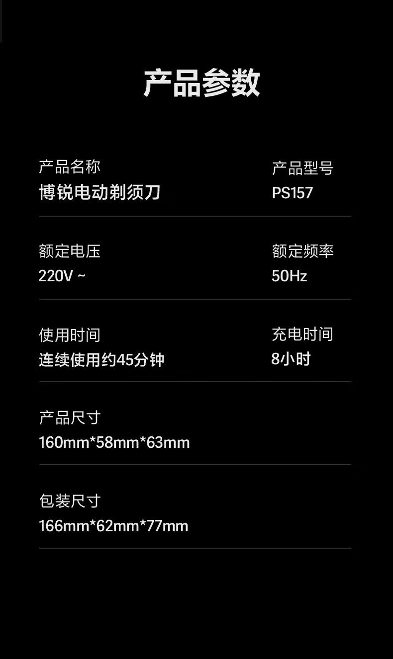 商品名称:博锐 飞科电动剃须刀男士刮胡刀充电式三刀头胡须刀便携迷你电动须刨全身水洗 PS157