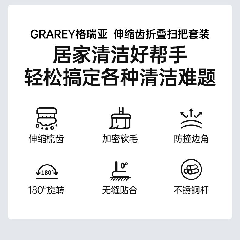 GRAREY(格瑞亚)扫把簸箕组合扫把套装扫地扫把扫帚不沾头发软毛扫把折叠(扫把+簸箕)