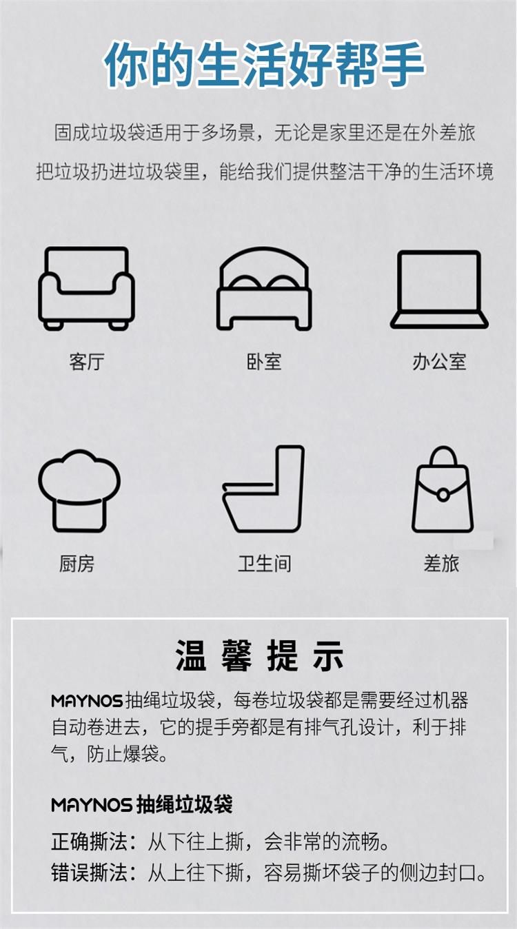 商品名称:GRAREY(格瑞亚)抽绳垃圾袋家用厨房手提式加厚宿舍用学生大容量grarey中号